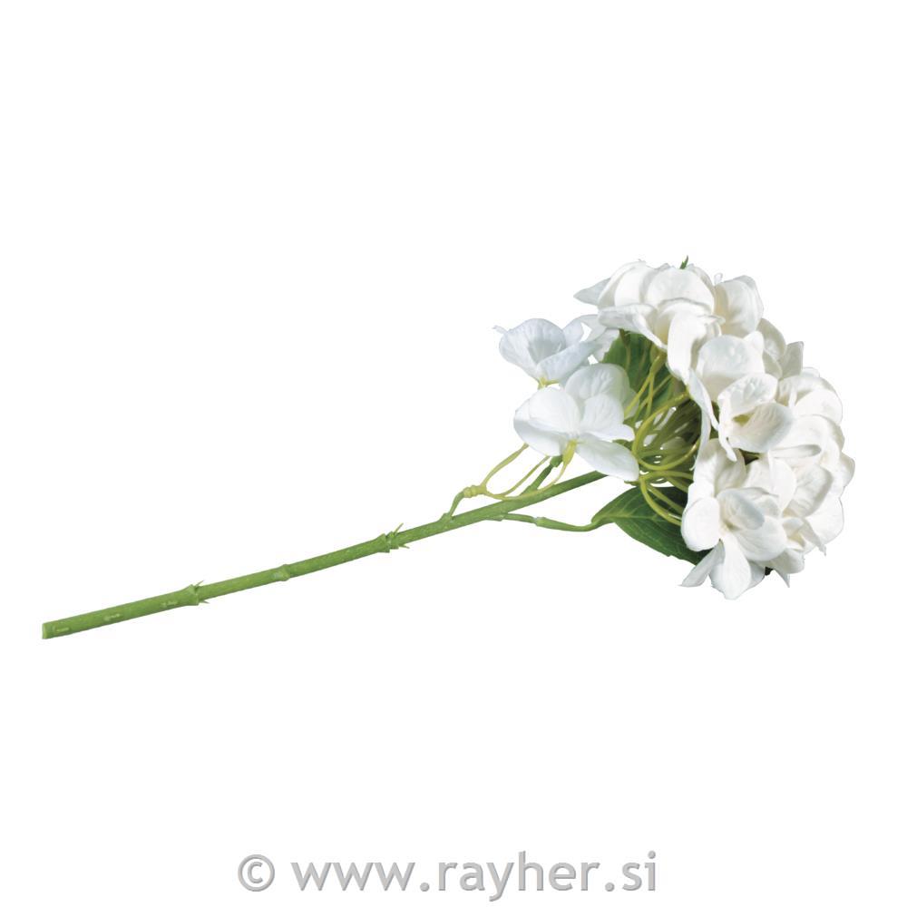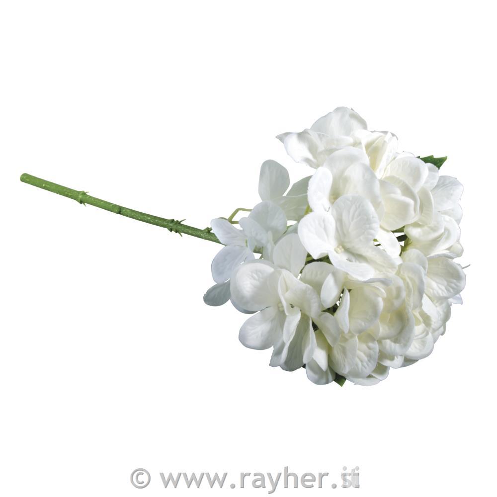 Umetna hortenzija, cvet na dotik, s 40 cvetovi in 2 listoma iz tekstilnih vlaken, plastično steblo, skupna dolžina približno 33 cm, premer cveta približno 17 cm.