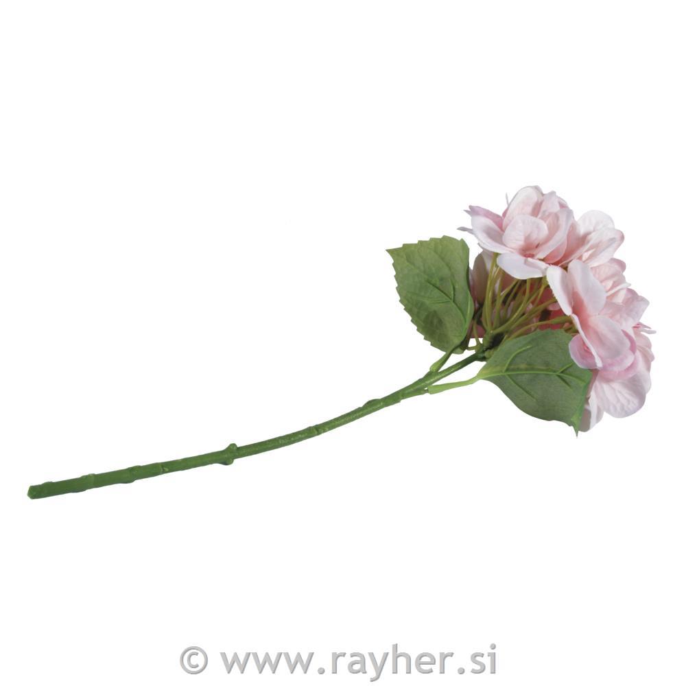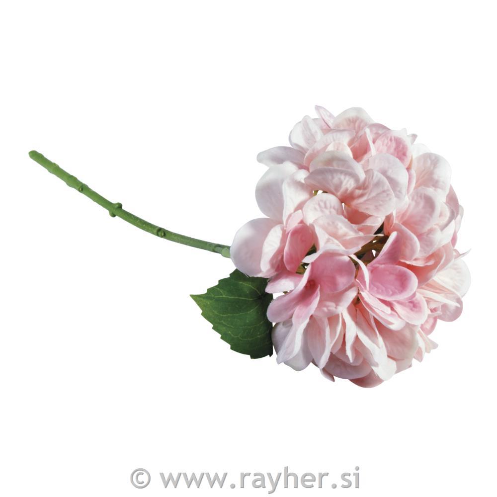 Umetna hortenzija, cvet na dotik, s 40 cvetovi in 2 listoma iz tekstilnih vlaken, plastično steblo, skupna dolžina približno 33 cm, premer cveta približno 17 cm.