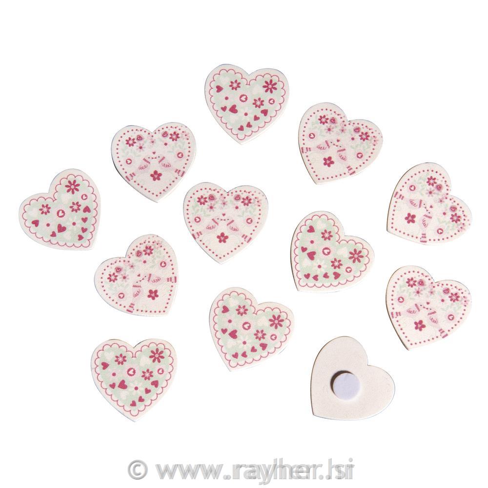 Leseni okraski, srca, 2.5cm, samolepilna, set 12