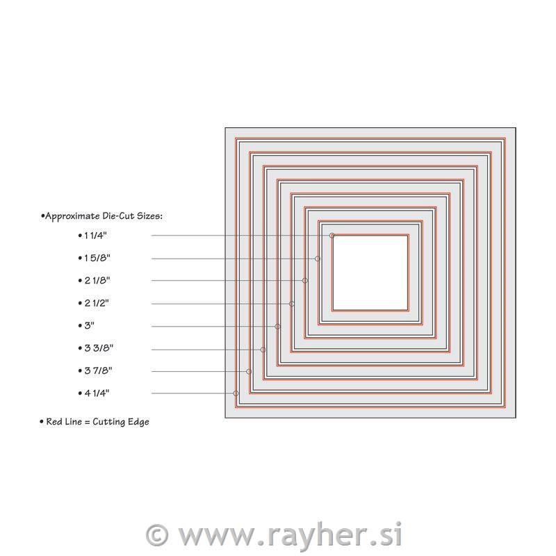 Sizzix Framelits šablone set, kvadrati, 8 kom.