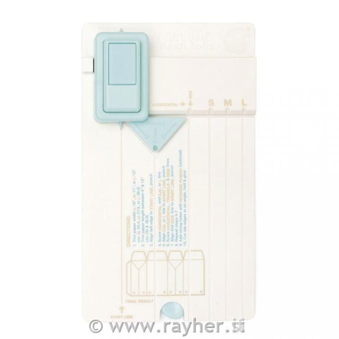 Inovativna rezalna plošča združuje luknjač in orodje za točkovanje, kar olajša izdelavo darilnih vrečk različnih dimenzij. Enostavna navodila so natisnjena na zadnji strani plošče.