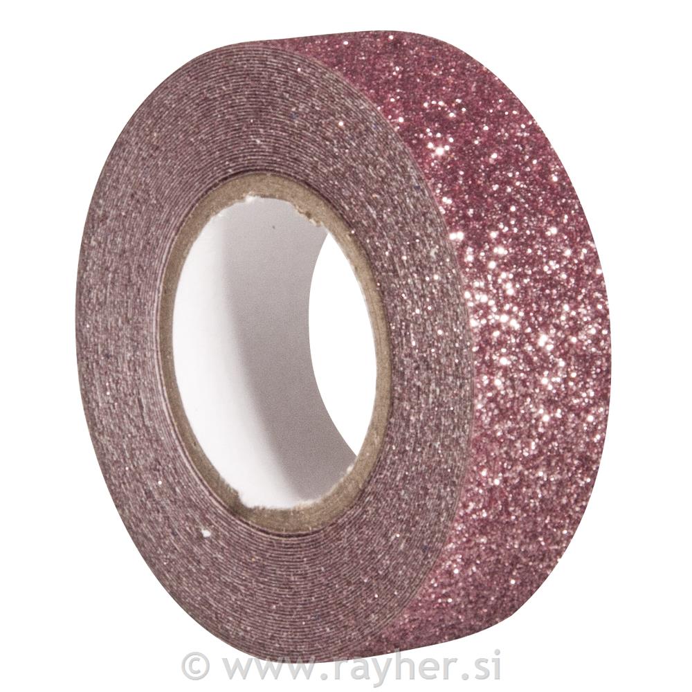Lepilni trak z bleščicami, roza, 15mm,5m