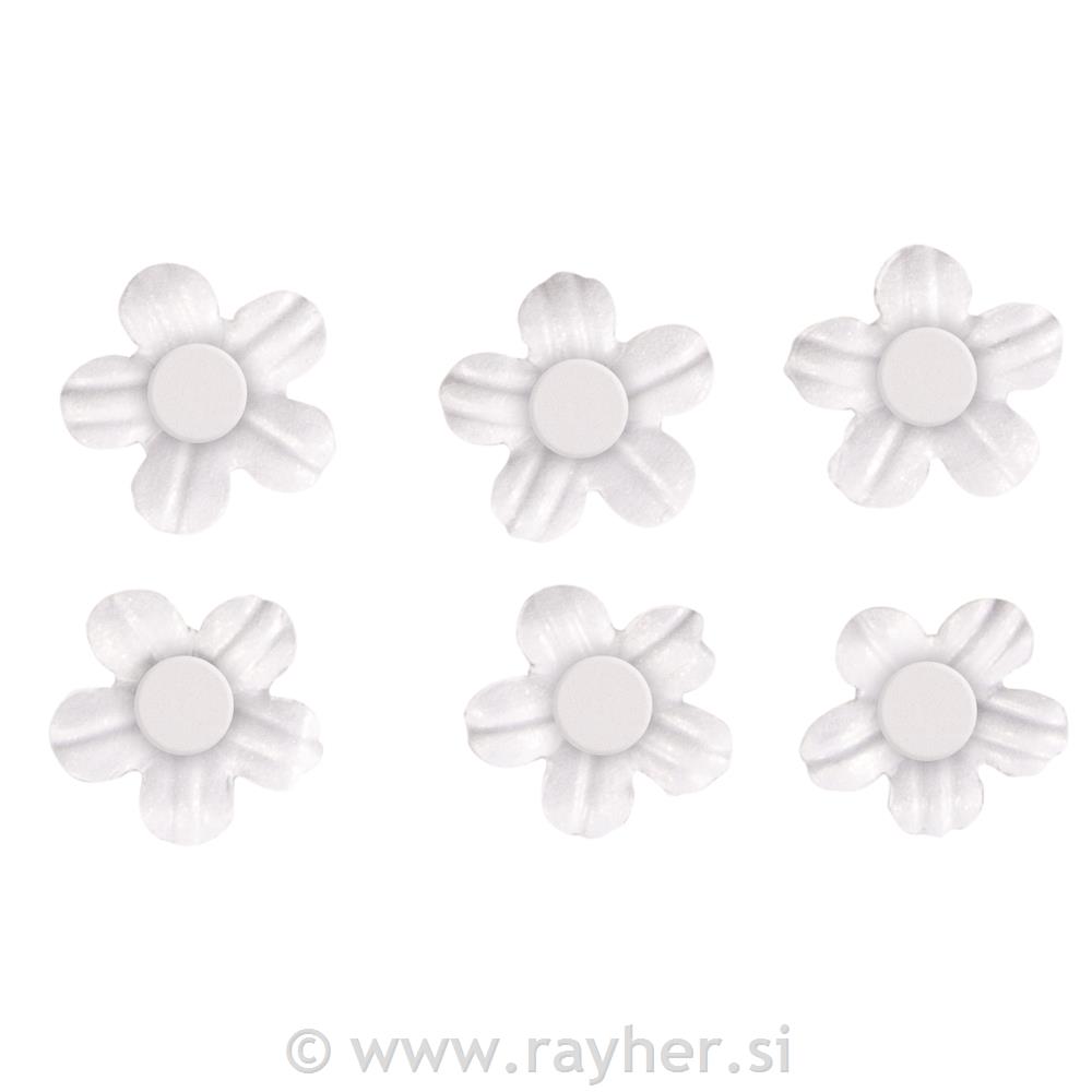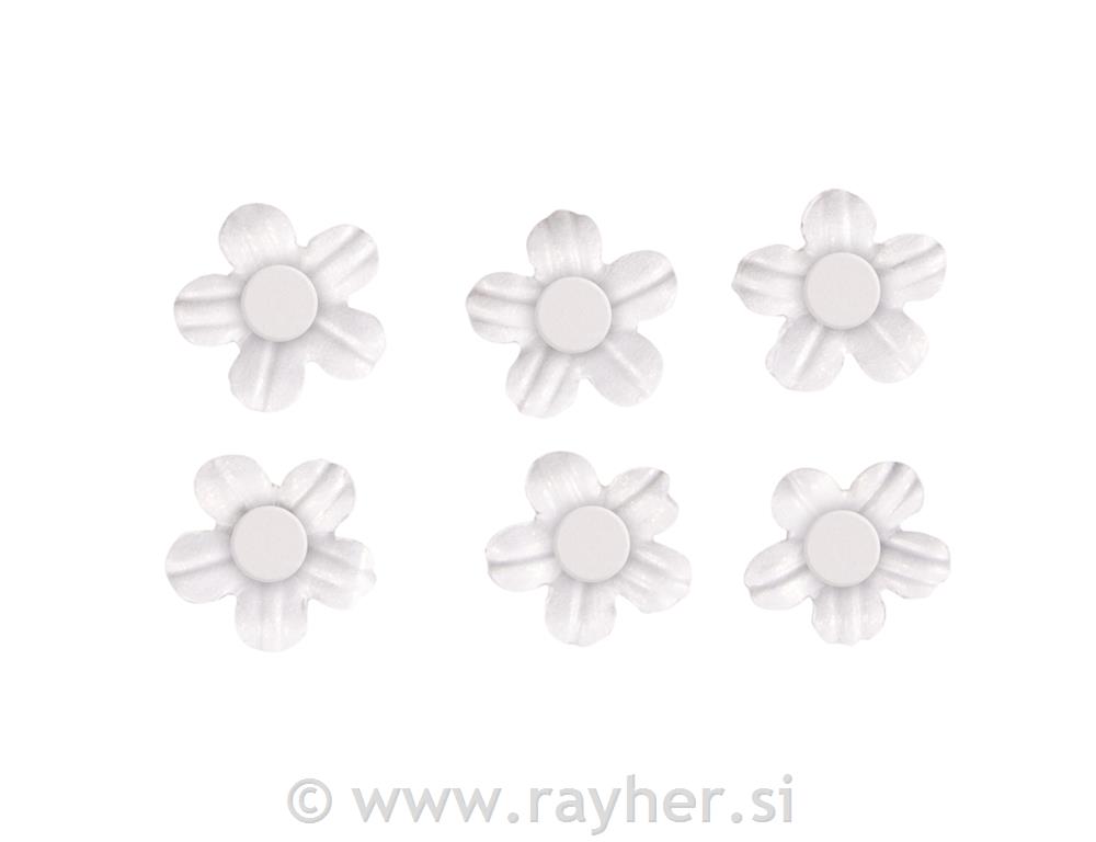 Deco sticker:paper blossoms w.semi-pearlw. adh. dot, tab-bag 20pcs white