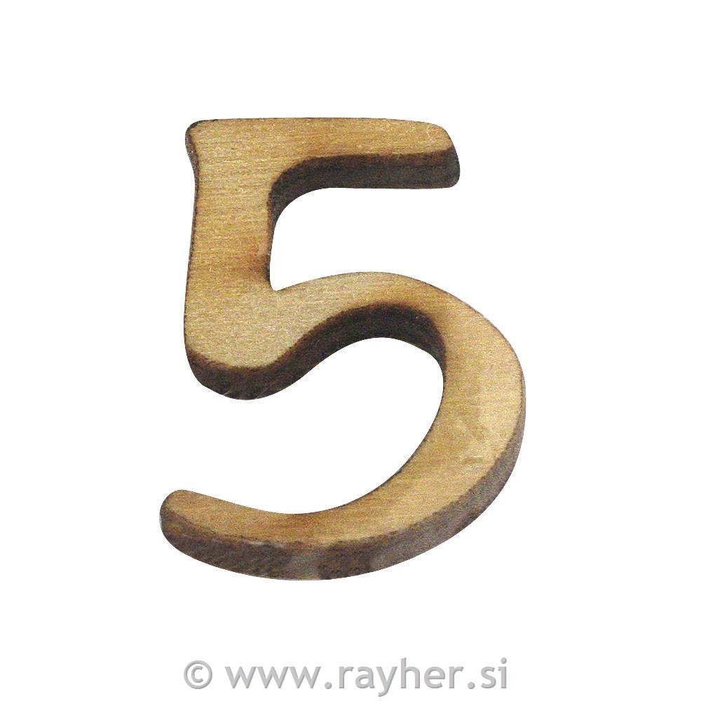 Wooden number, 5, 2 cm