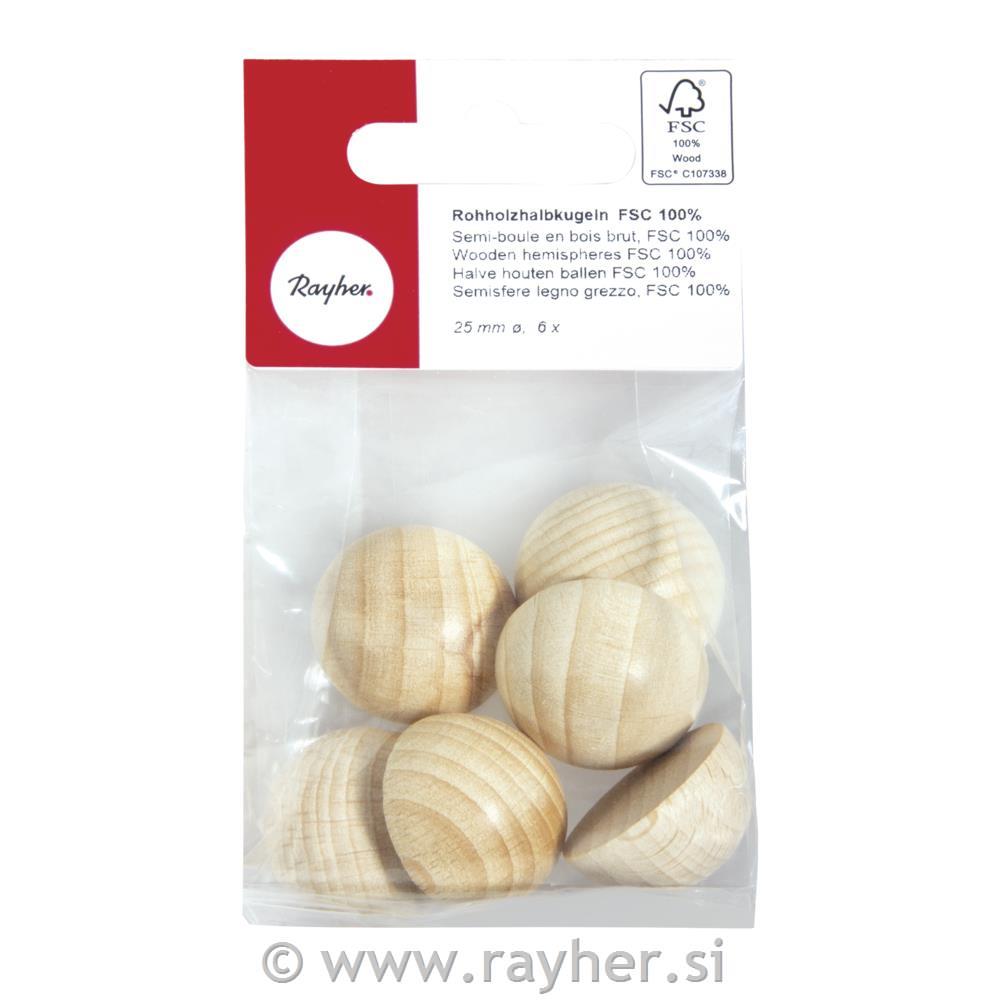 Lesene pol-kroglice, 25mm, 6 kos, 100%FSC