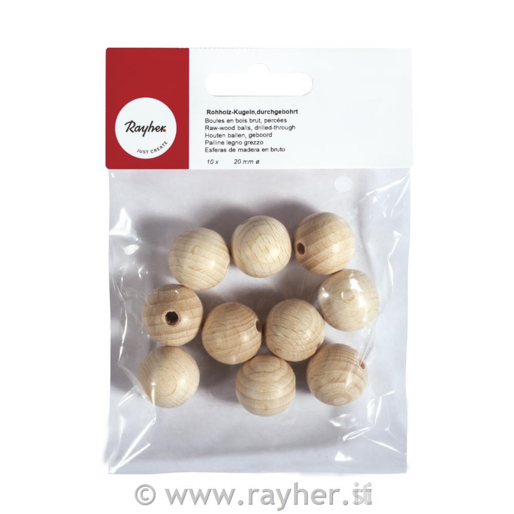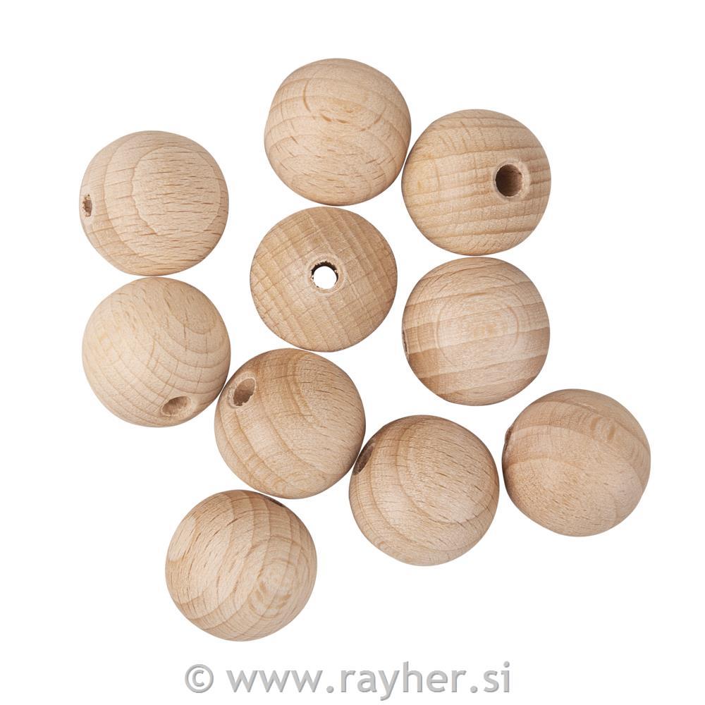 Lesene kroglice, naravne, 20 mm o, luknja 4 mm, 10 kom.