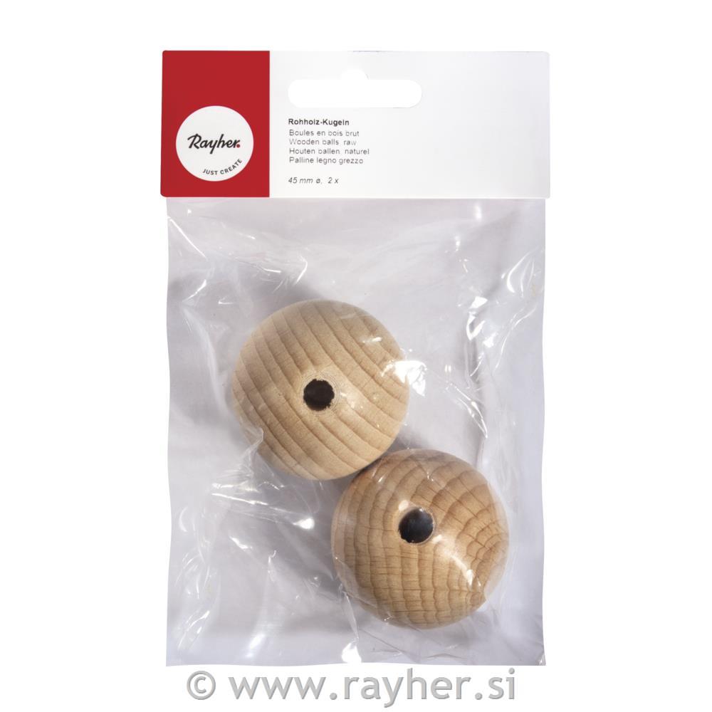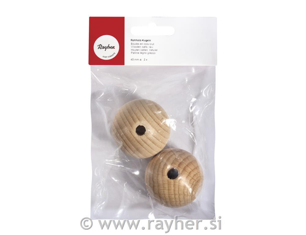 Lesene kroglice, naravne, 45 mm o, luknja 8 mm, 2 kom.