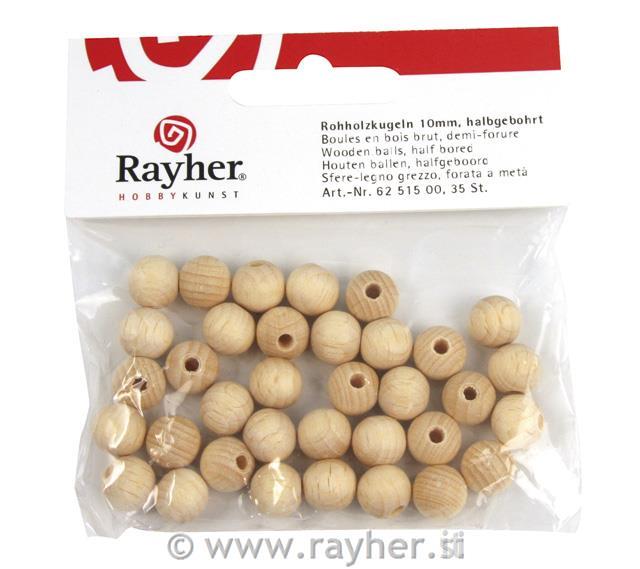 Lesene kroglice, naravne, luknjica na eni strani, 15 mm, 25 kom.