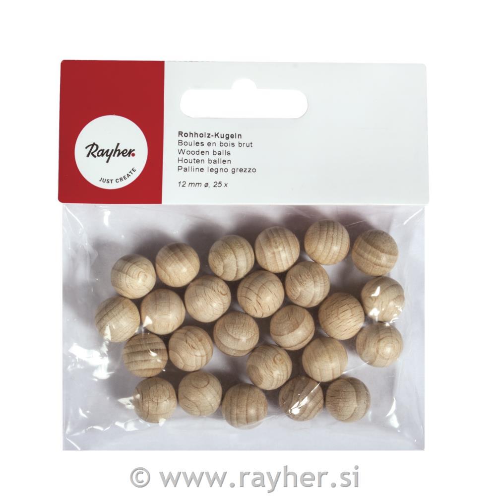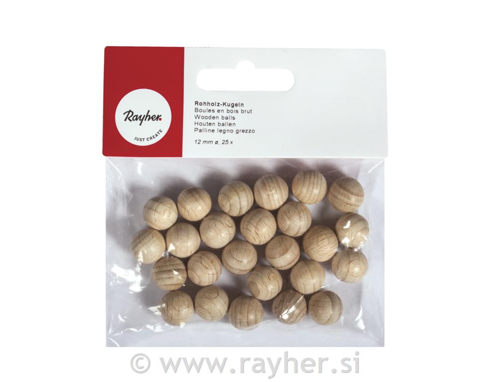 Lesene kroglice, naravne, polne, 12 mm o, 25 kom.