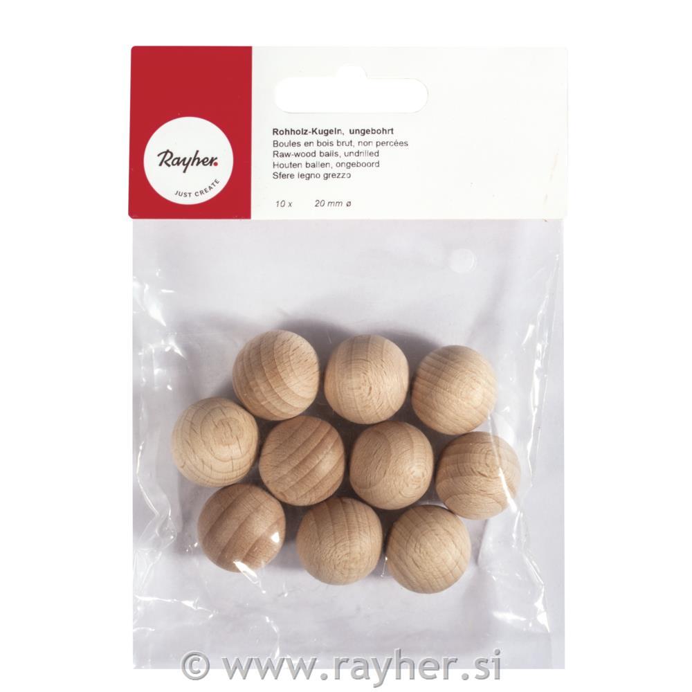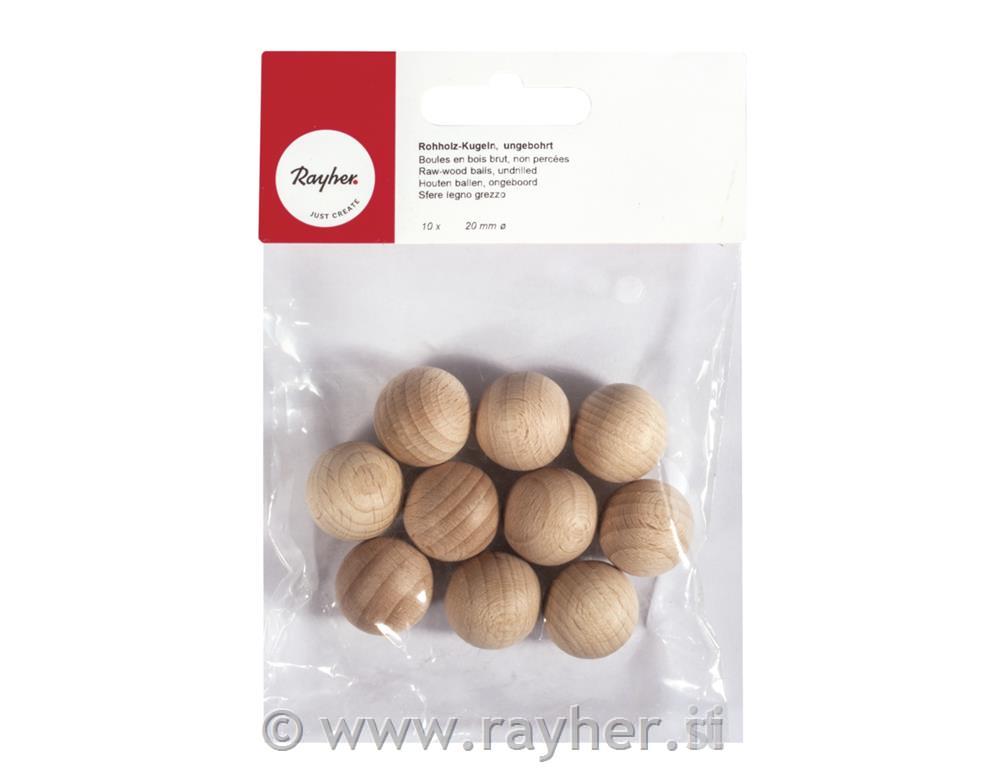 Lesene kroglice, naravne, polne, 20 mm o, 10 kom.