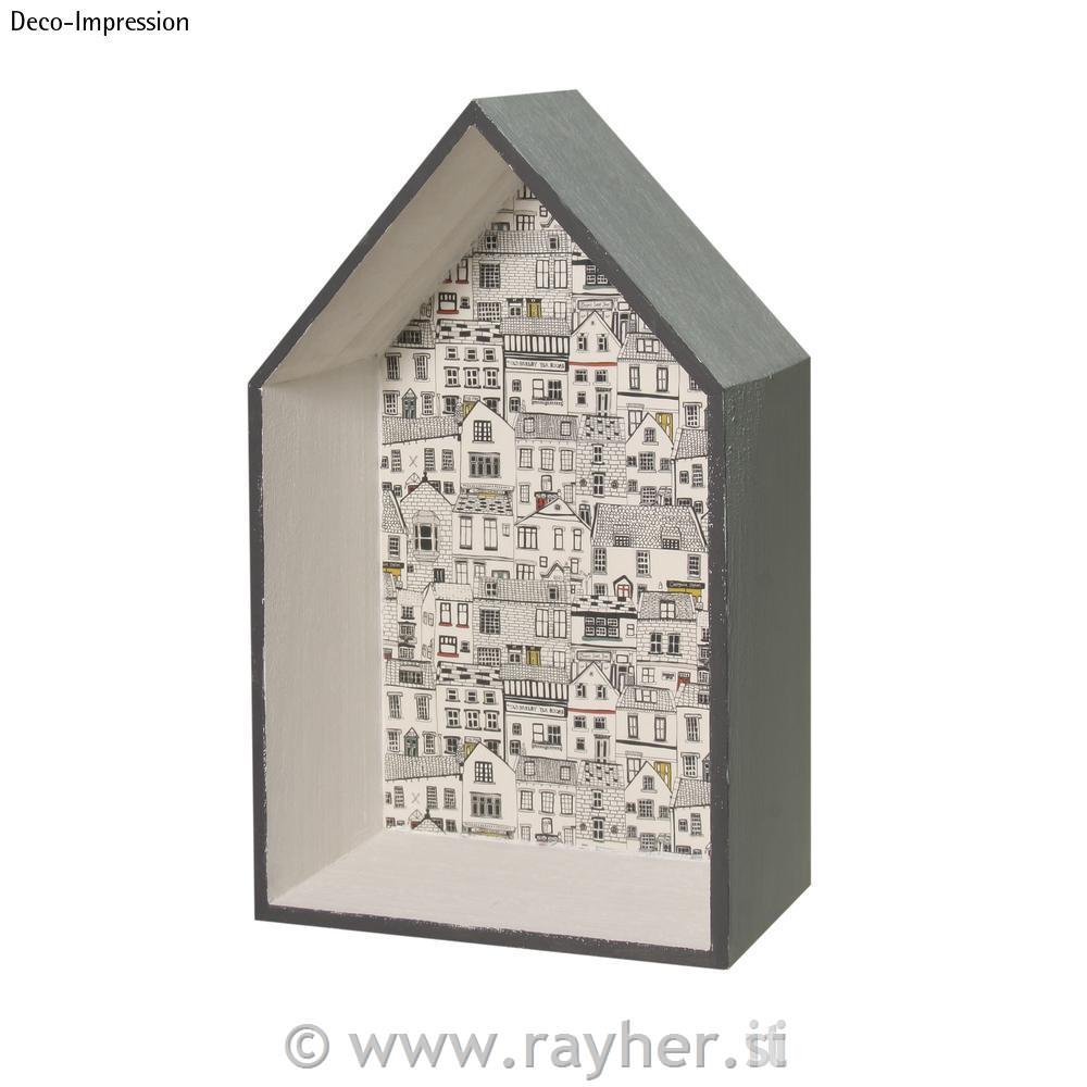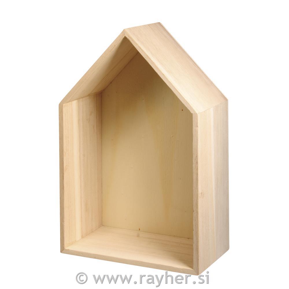 Tridimenzionalna lesena hišica: višina 24 cm, širina 16 cm, globina 8 cm, z obešalnikom.