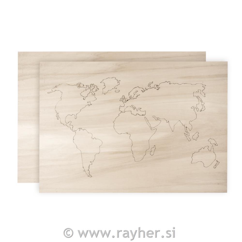 Lesena karta sveta, dve plošči, 42x29.7x0.4cm