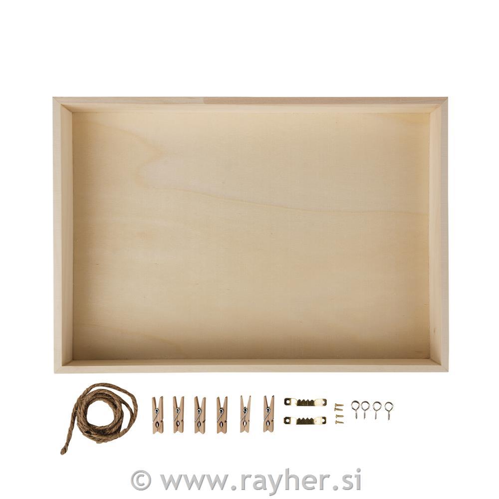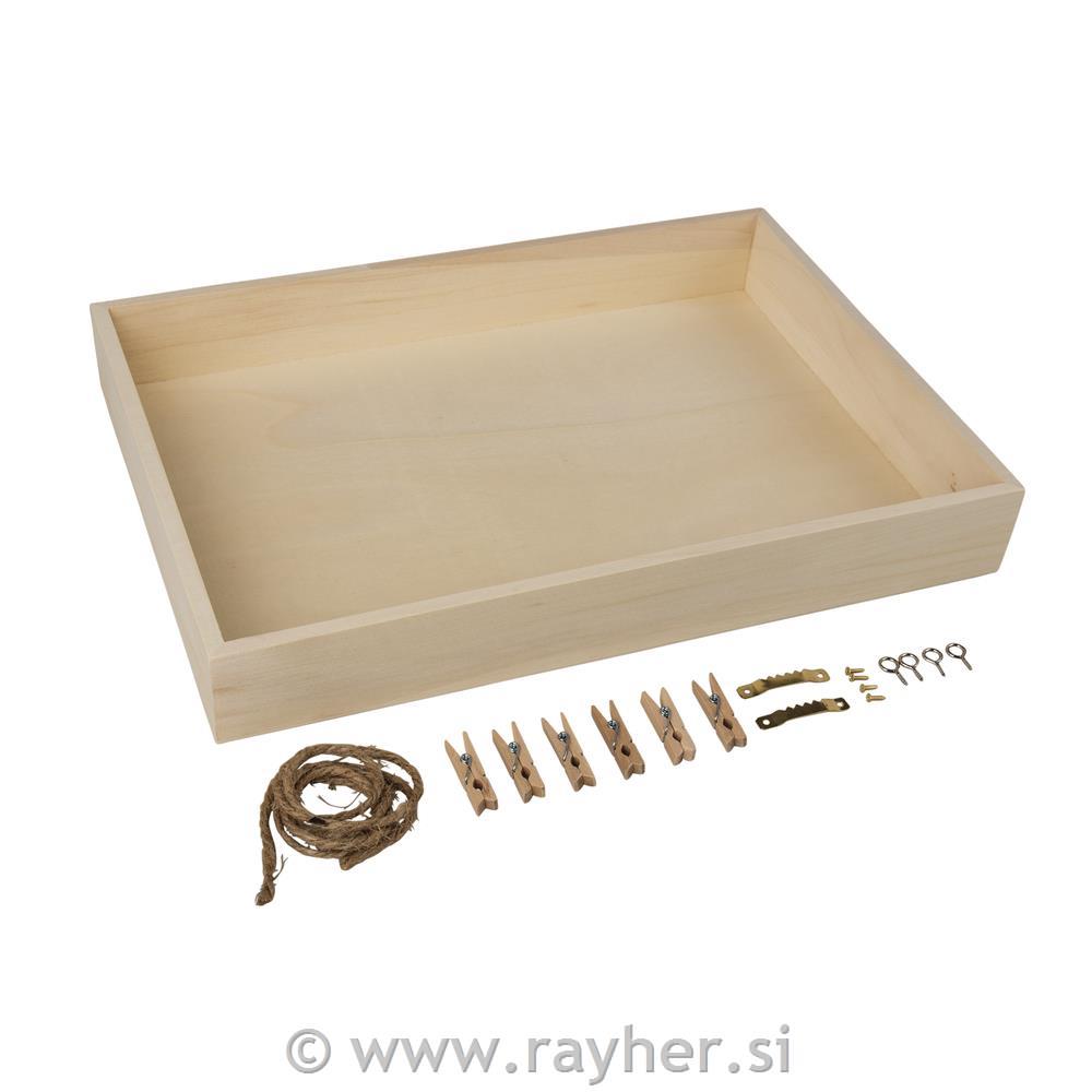 - 1 lesen okvir 36x25x5 cm (notranje mere: 23,4x34,5x4,8 cm)