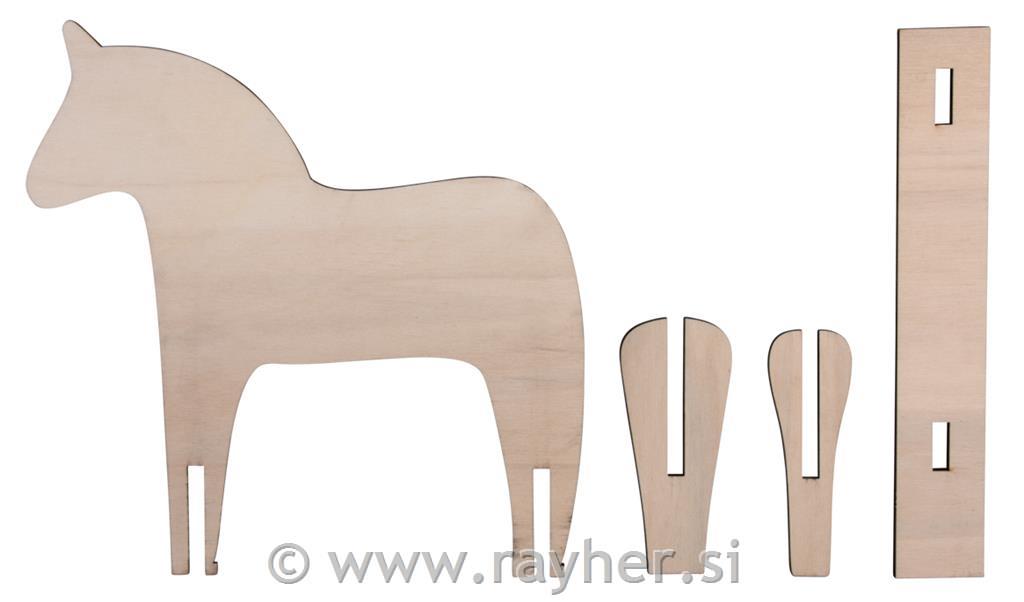 Ustvarite elegantnega lesenega konja. Štiridelni set je mogoče enostavno sestaviti v stabilnega lesenega konja. Glede na vaše želje, okus in letni čas lahko konja okrasite in polepšate. Odlične rezultate lahko dosežete z barvanjem, šabloniranjem ali ustvarjalnim okraševanjem.