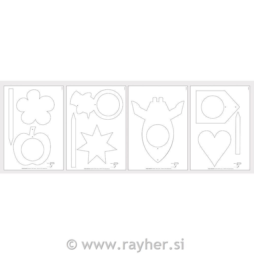 Vsebina kompleta: 4x vezane plošče 30 x 20 cm, debelina 4 mm, 1x papir za prenos, 4x predloge motivov