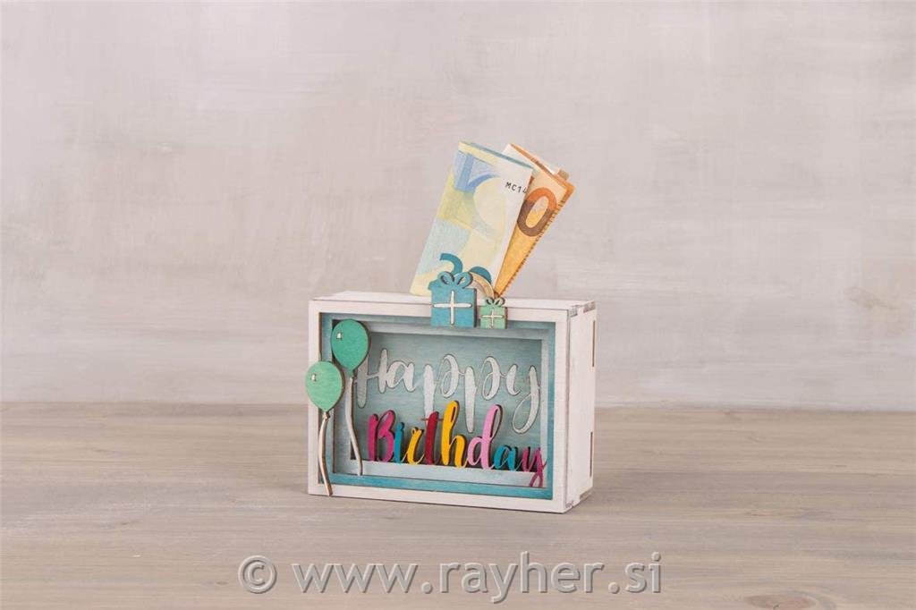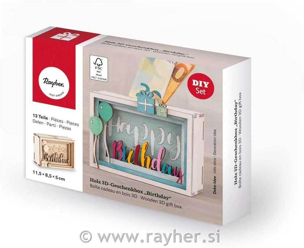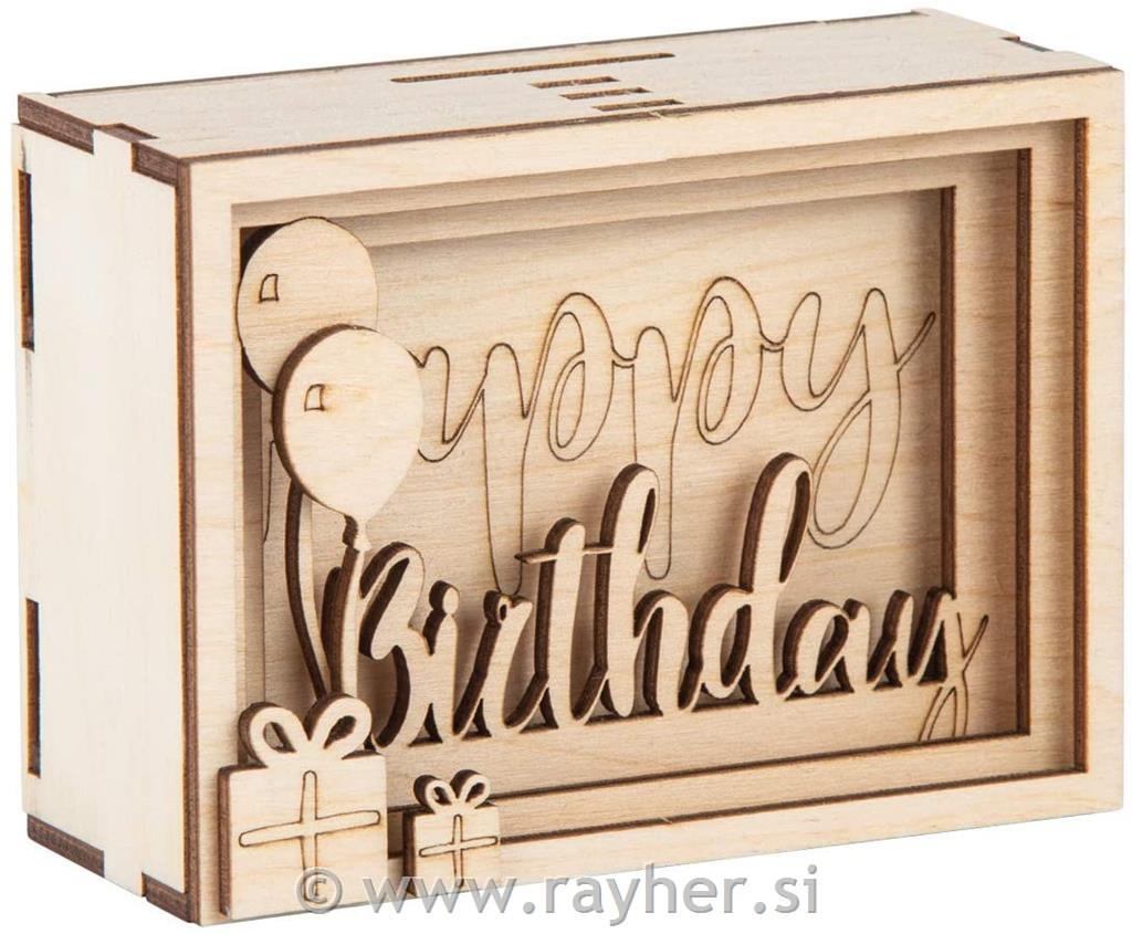 Lesena 3D škatla za darilo "Happy Birthday", 13-delni set
