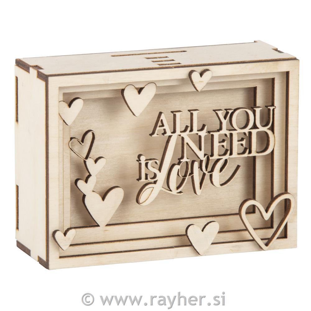 Lesena 3D škatla za darilo "Love", 11.5x8.5x5cm