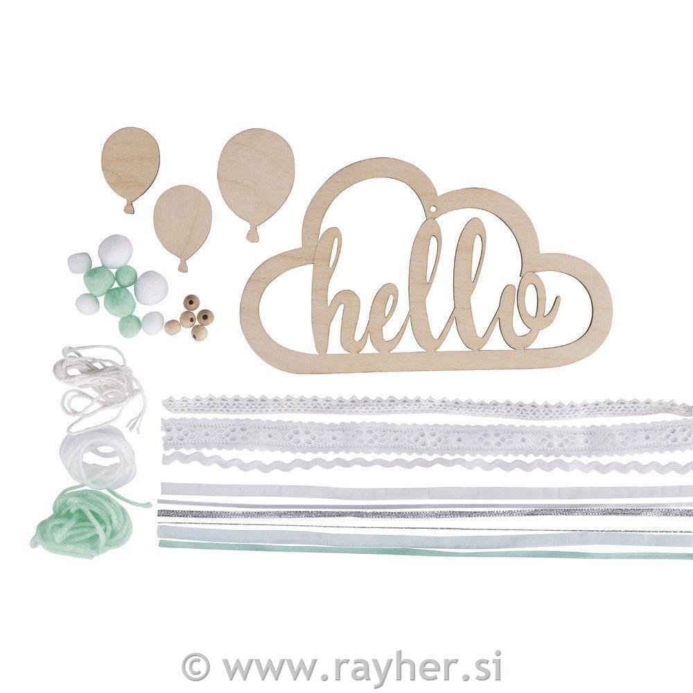 Ustvarjalni set "Hello", mint, lesen oblak: 22x12.5cm