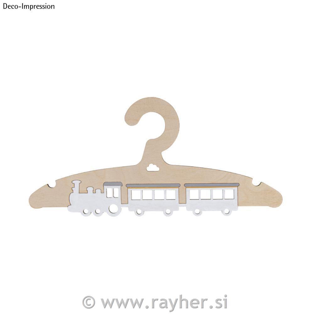 Leseni obešalnik vlak, lahko pobarvate z akrilnimi barvami ali lazurami za les, ki jih najdete na tej povezavi: www.rayher.si/...