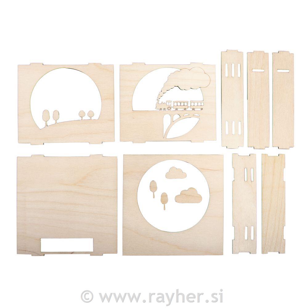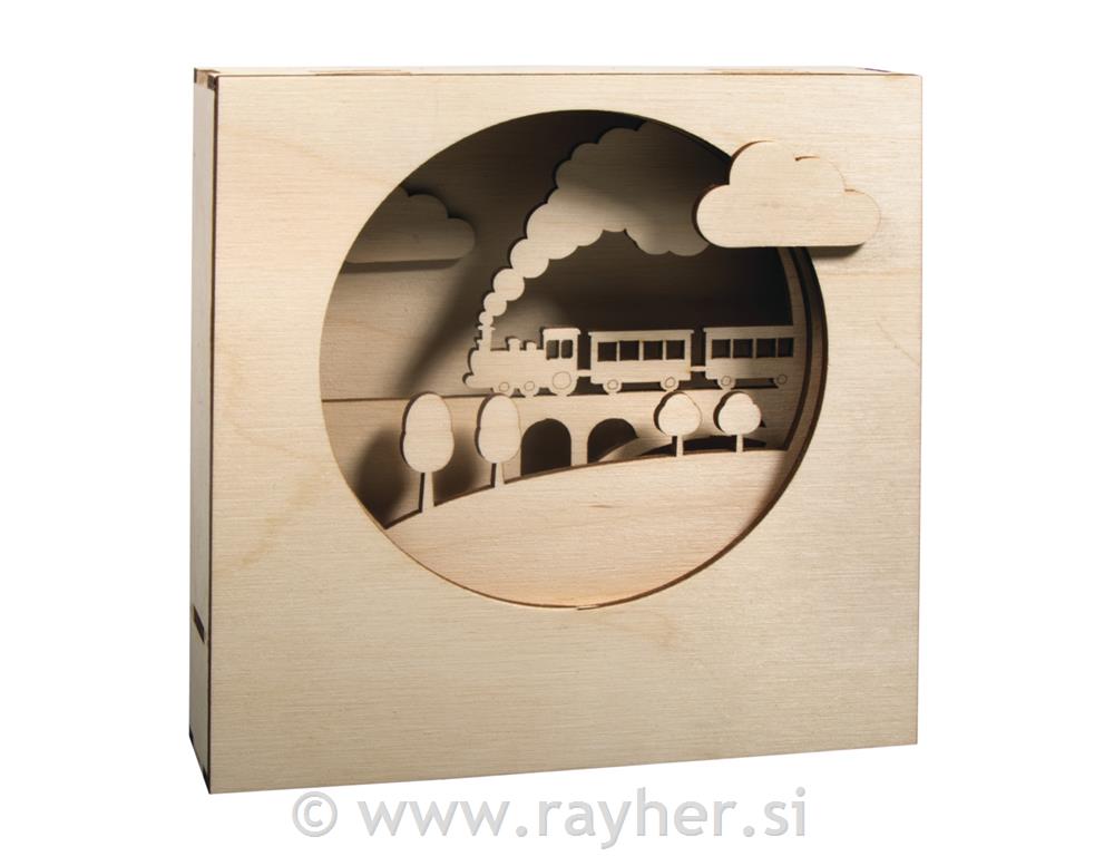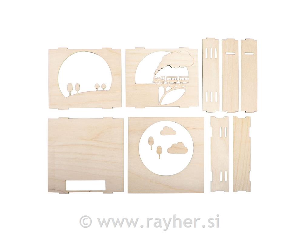 Wood.buil.kit 3D motif-frames,FSCMixCred15.5x15.5x3.4cm, train,13-part, box 1Setnatural