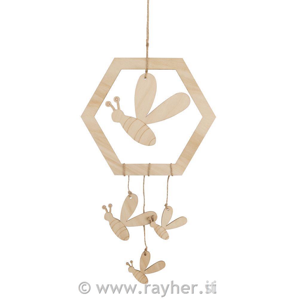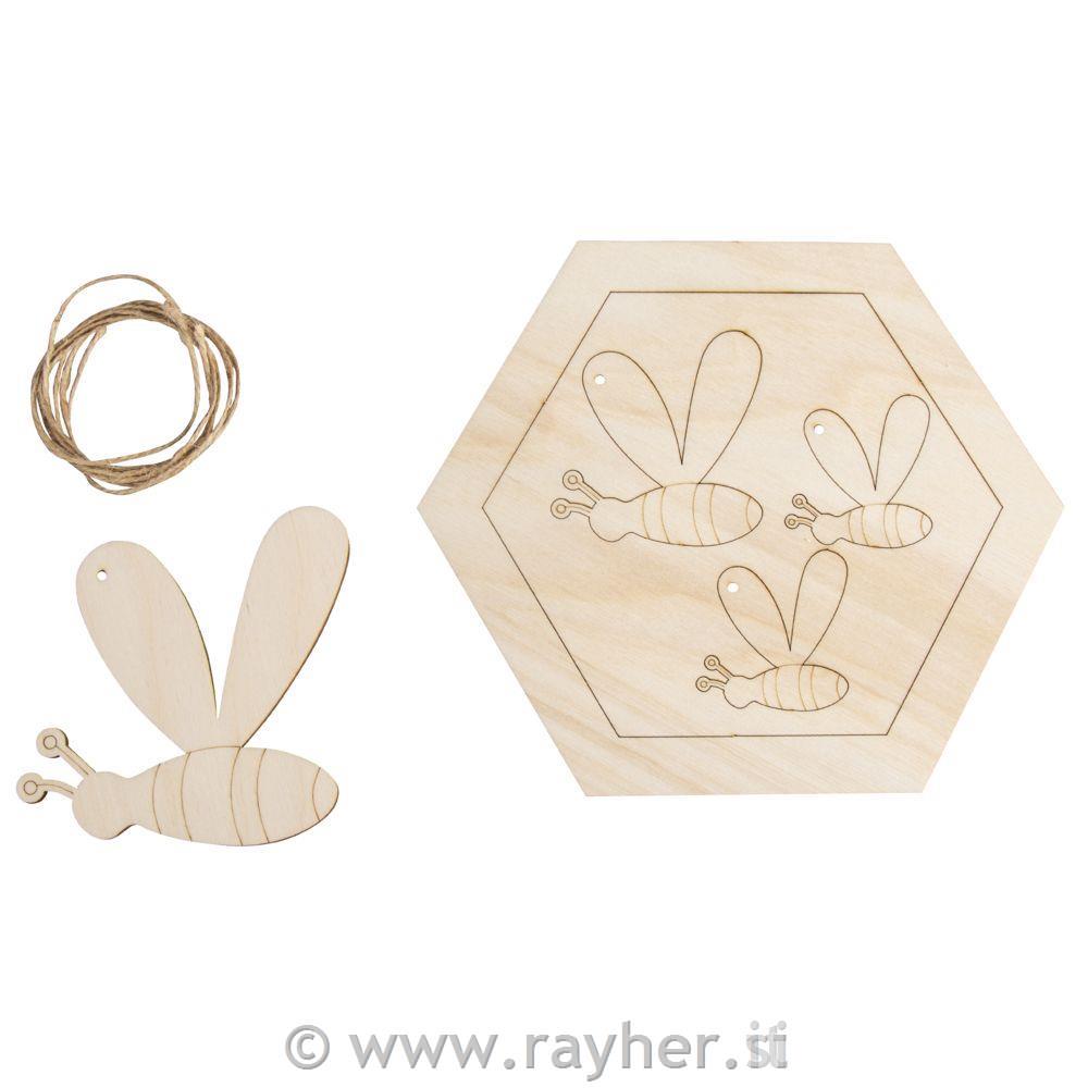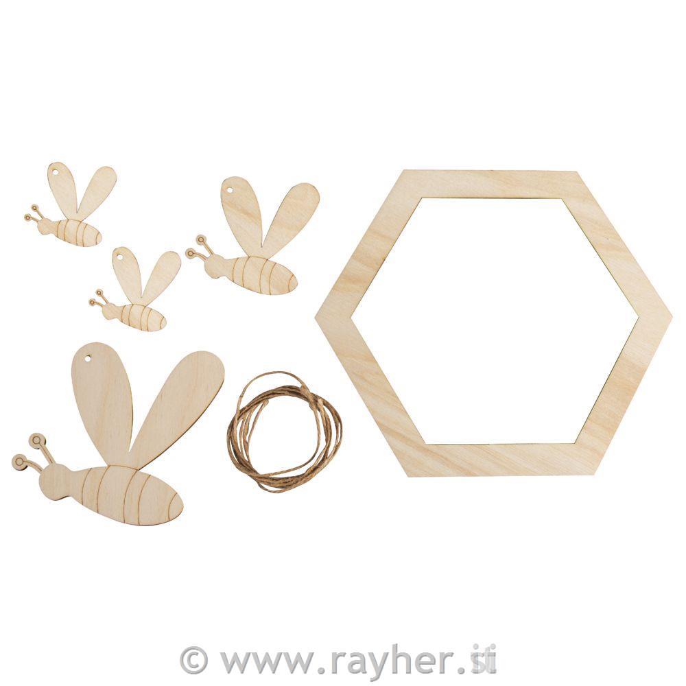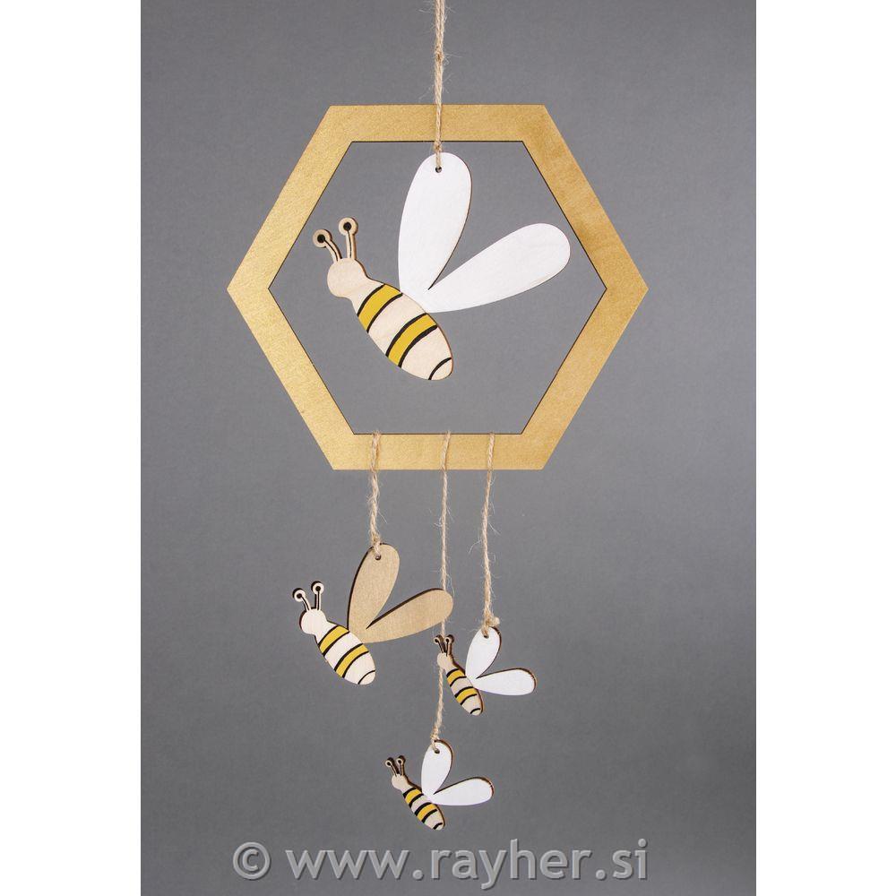 Leseni okras Čebelice in satovje, obešanka, 4.5-20cm, set 6