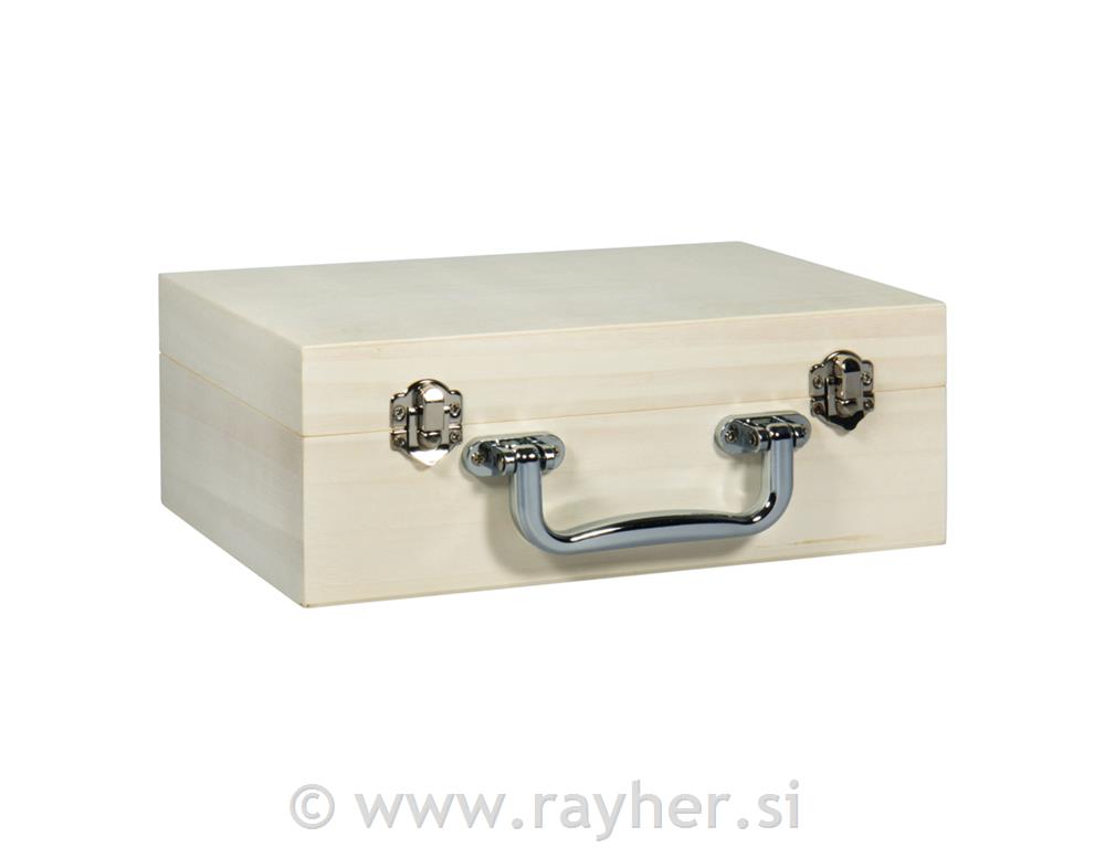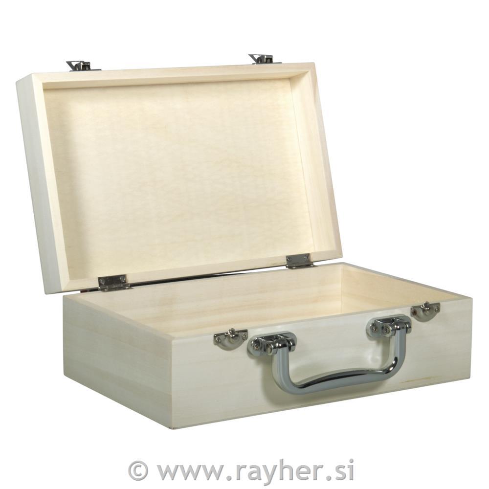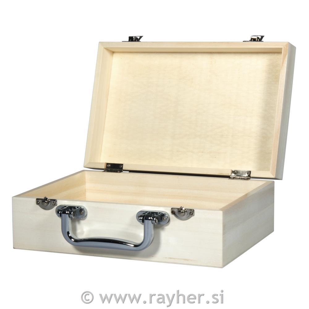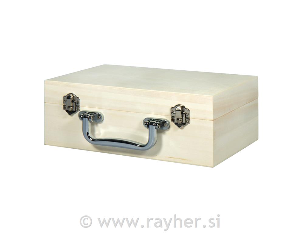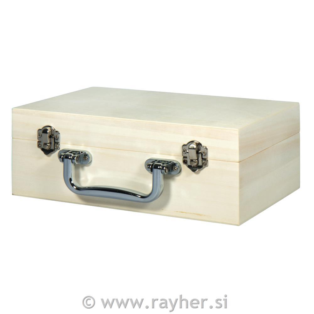 Praktičen lesen kovček za pripomočke je vsestransko uporaben, naraven ali lepo poslikan oz.okrašen. Za shranjevanje spominkov, pisal, drobnarij, fotografij, razglednic, kot škatlica za nakit itd.