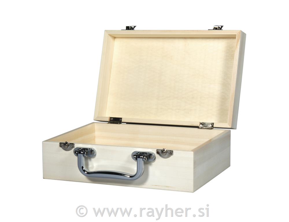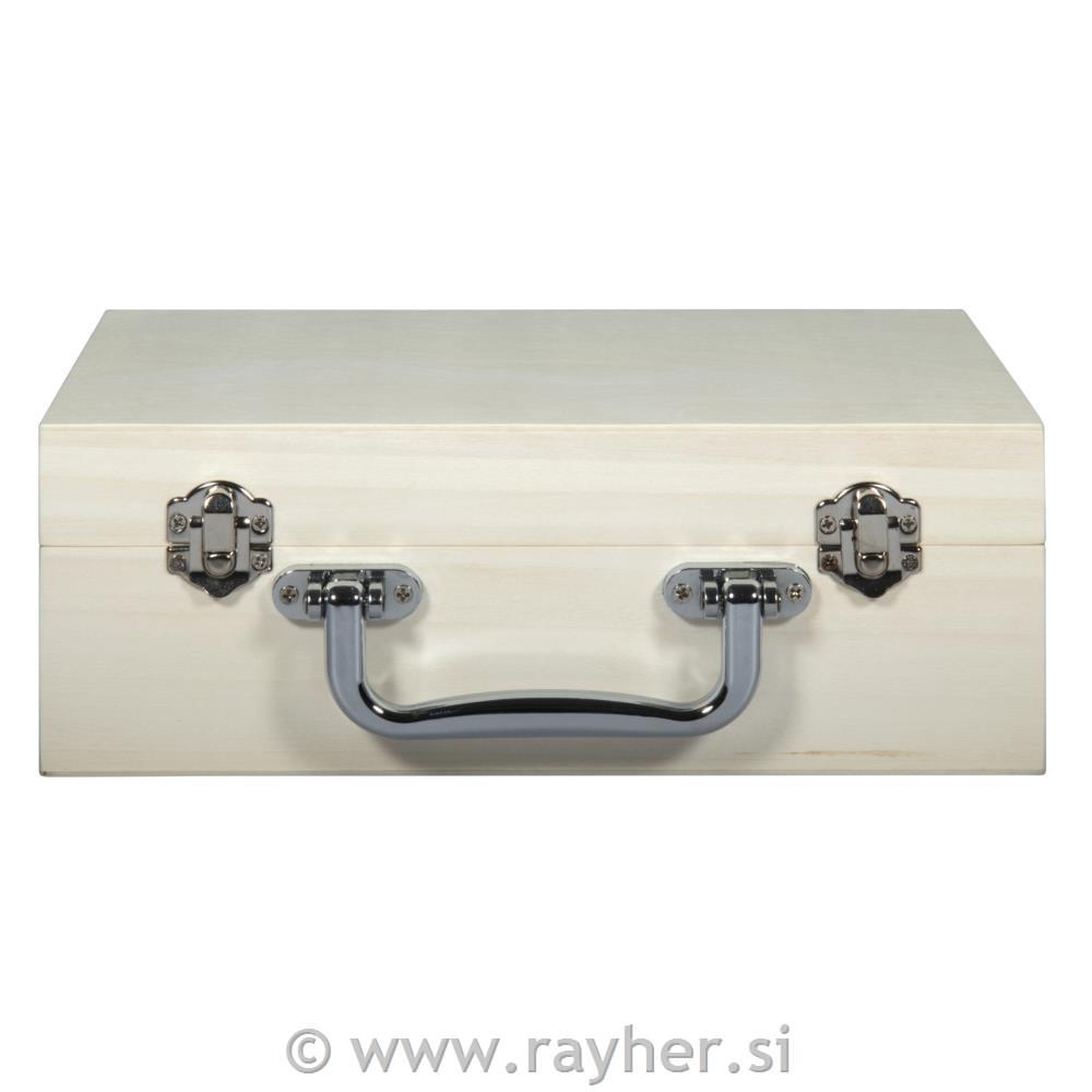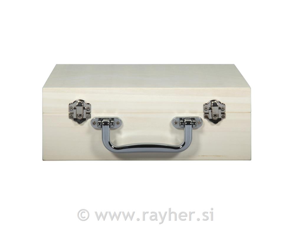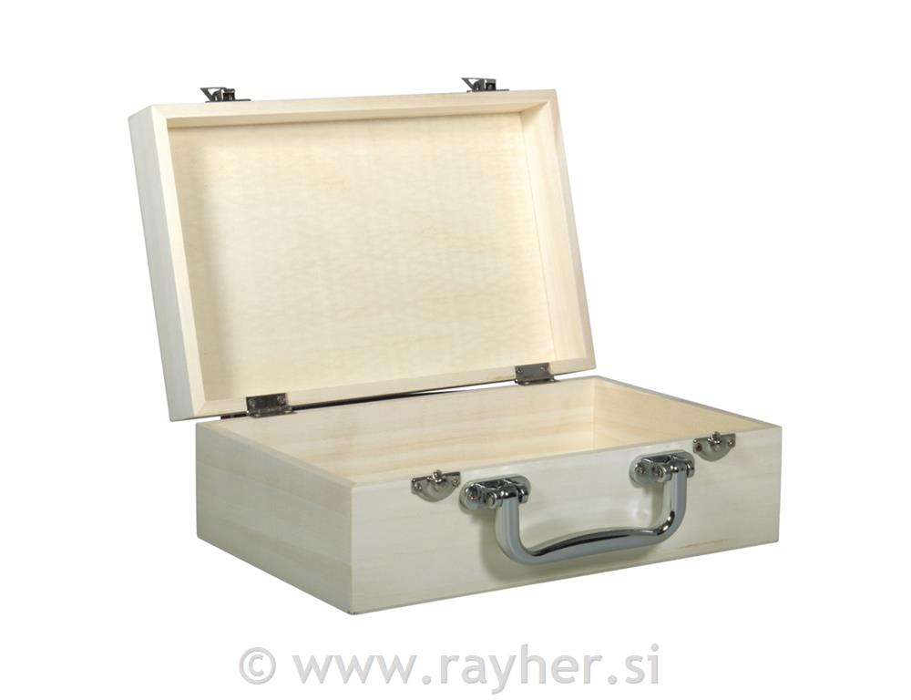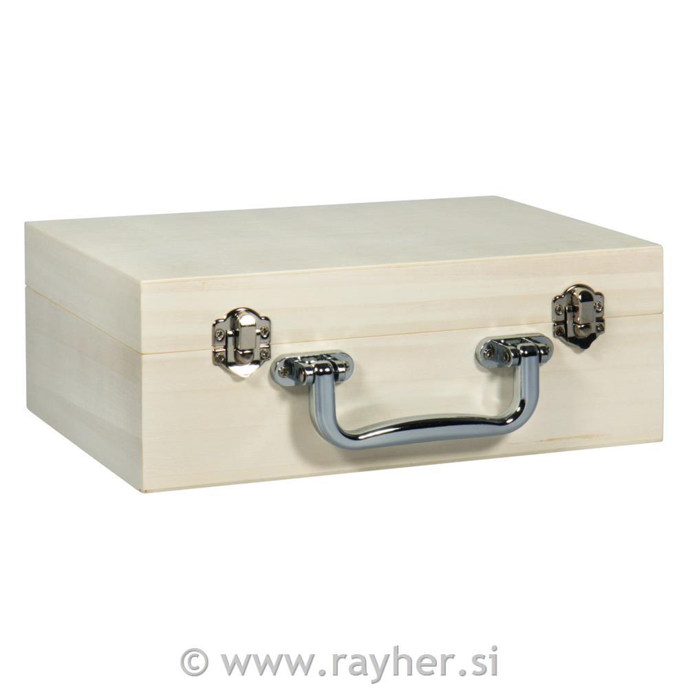 Praktičen lesen kovček za pripomočke je vsestransko uporaben, naraven ali lepo poslikan oz.okrašen. Za shranjevanje spominkov, pisal, drobnarij, fotografij, razglednic, kot škatlica za nakit itd.