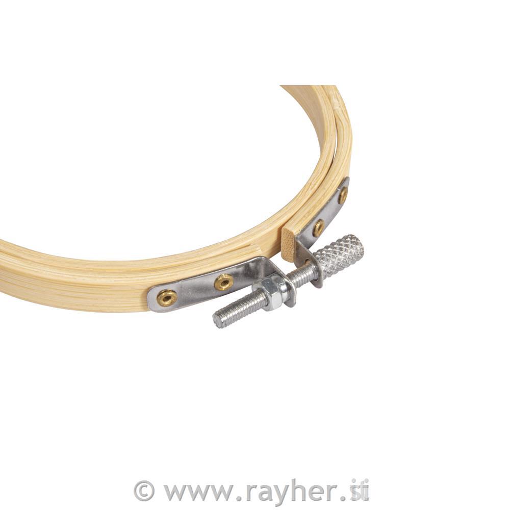 Tkanino položite na notranji obroč, privijte večji obroč, ga potisnite čezenj in ponovno zategnite z vijakom.