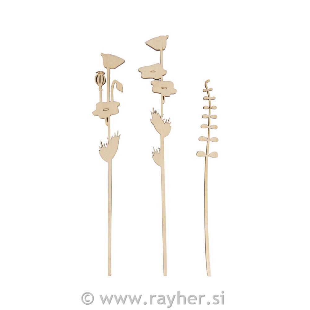 Leseni okras, mak in trava, 16+18,5+20cm, set 3