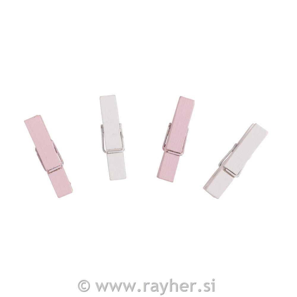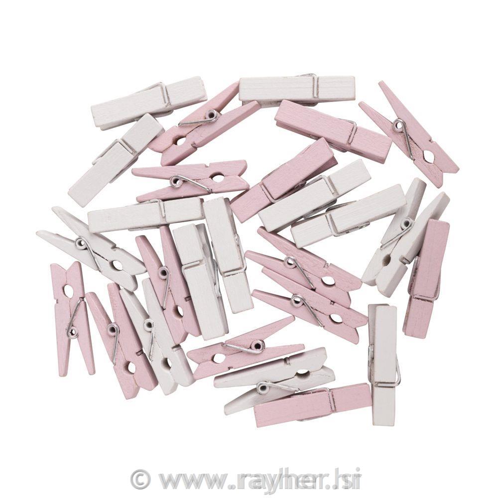 Lesene ščipalke, pink/bele, 3,5 cm, 26 kosov, FSC