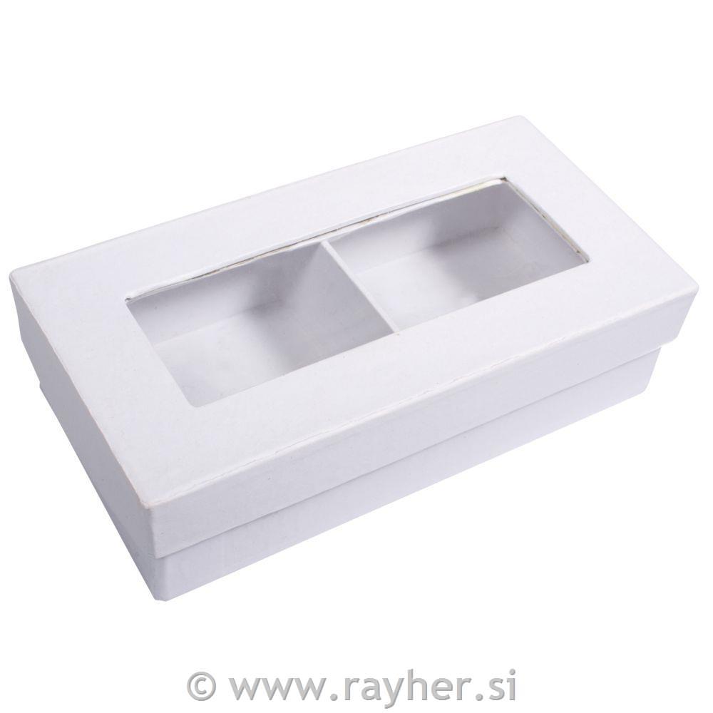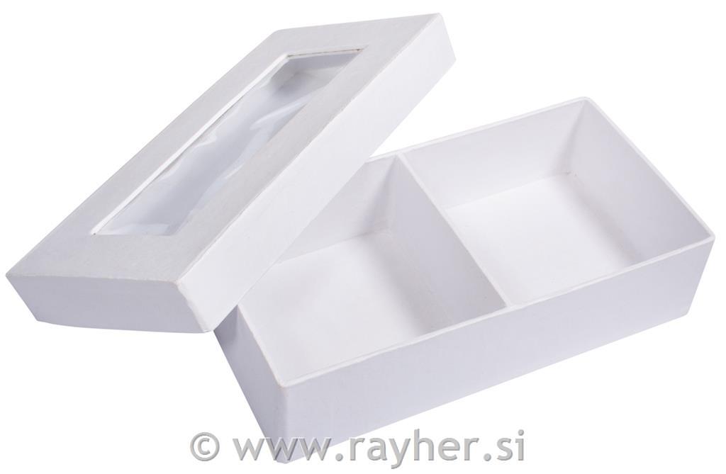 Škatla iz papirne mase z prozornim pokrovom, bela