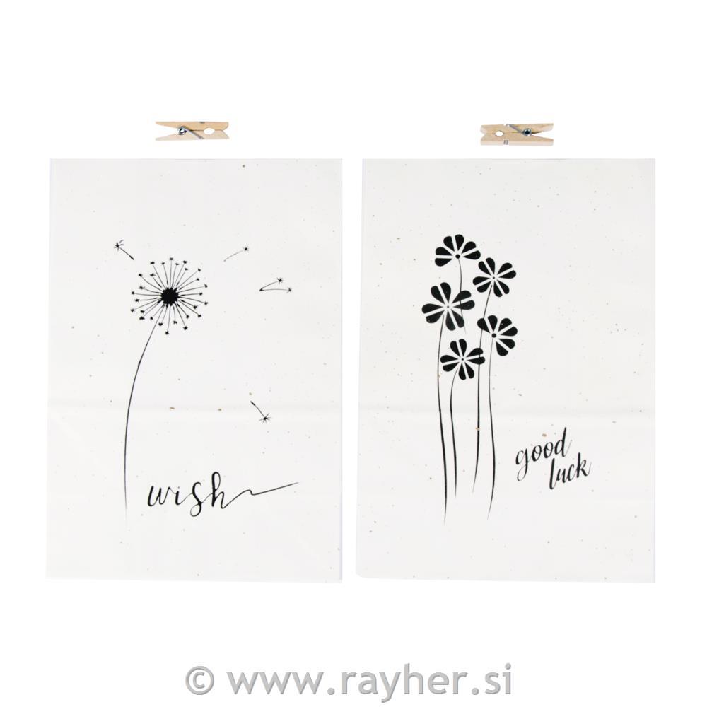 Papirnate vrečke&ščipalke Lepe želje, 14x19.7x8cm, 2 kosa