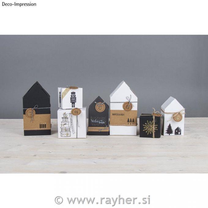 Hiške lahko poljubno okrasite s trakovi, barvami, bleščicami, štampiljkami,…