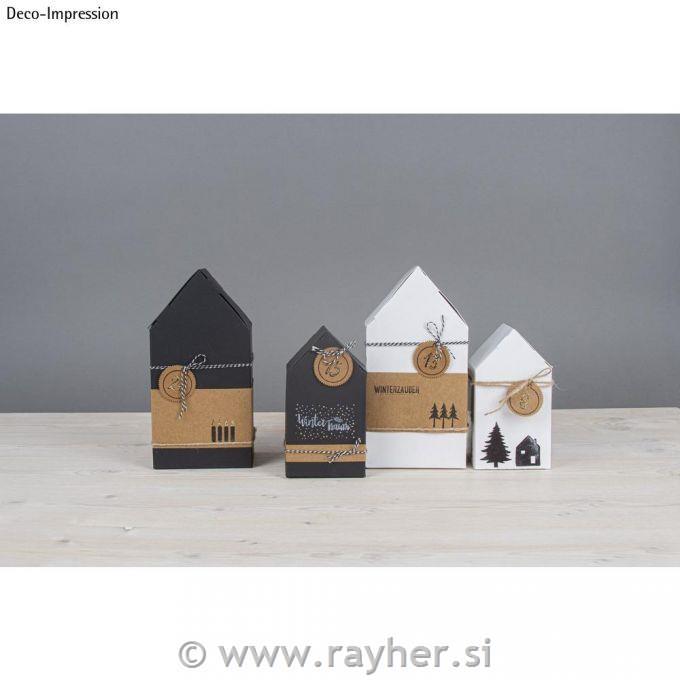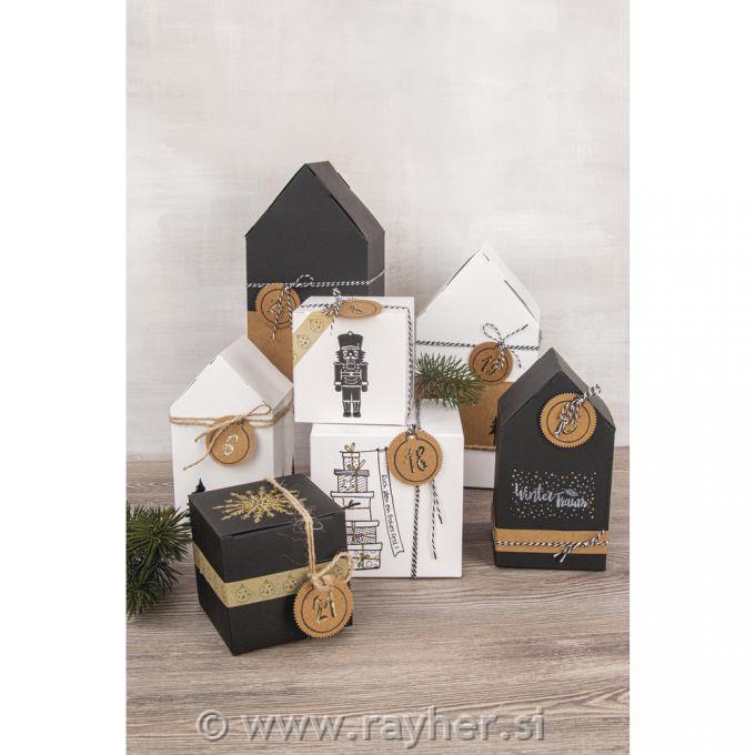 Škatle iz kartona, Hiške, bele, 10x7.5x20cm, set 3