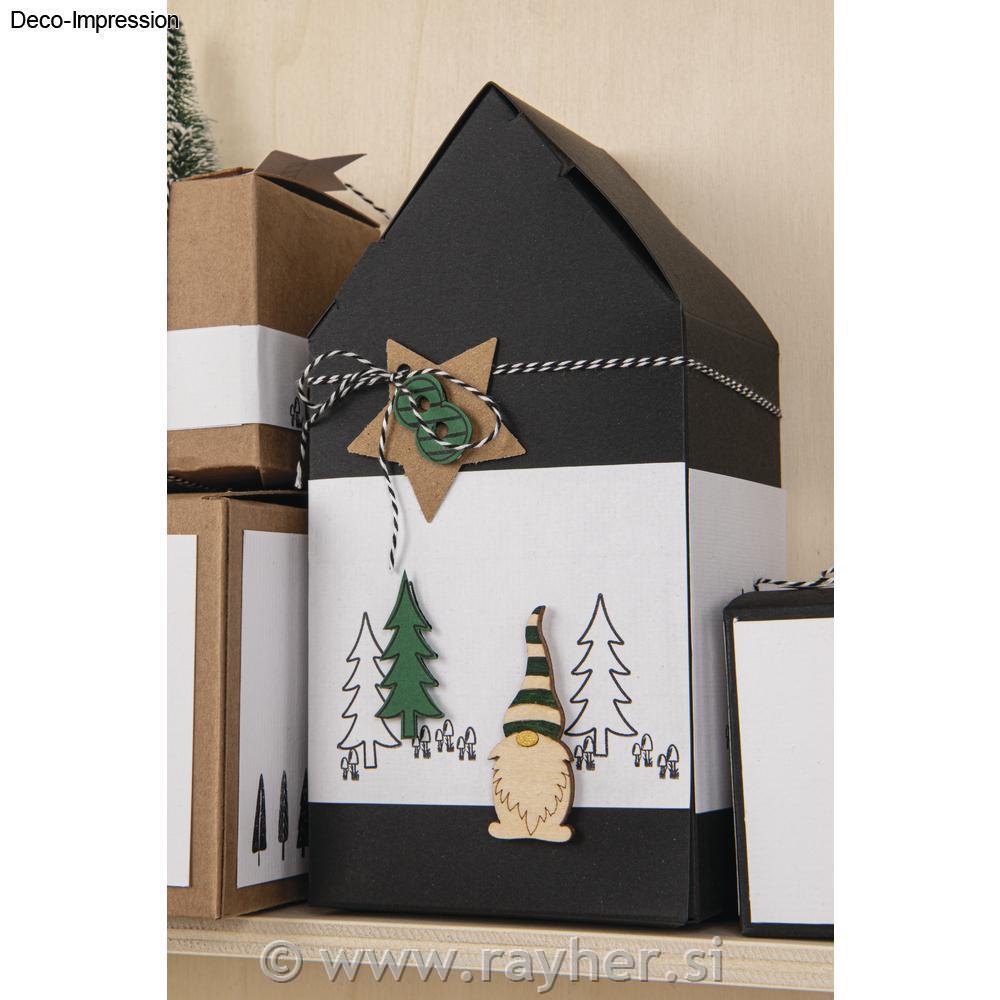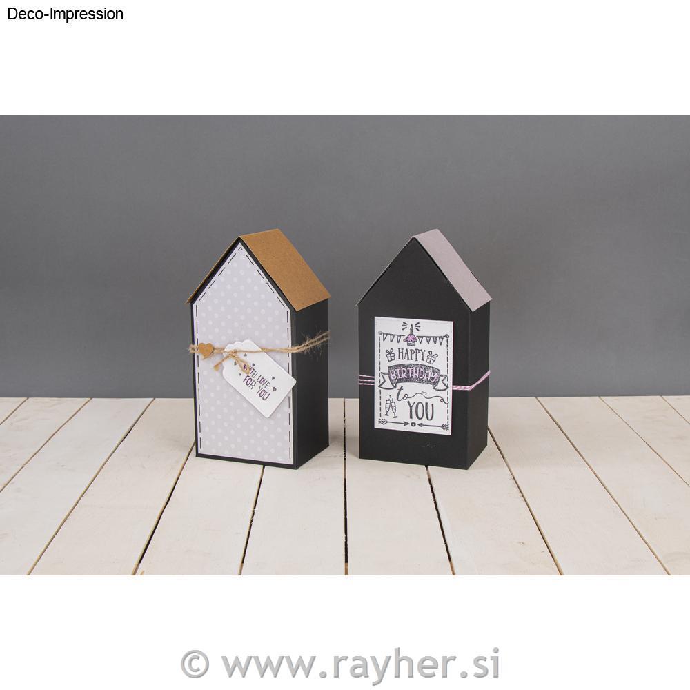 Hiške lahko poljubno okrasite s trakovi, barvami, bleščicami, štampiljkami,…