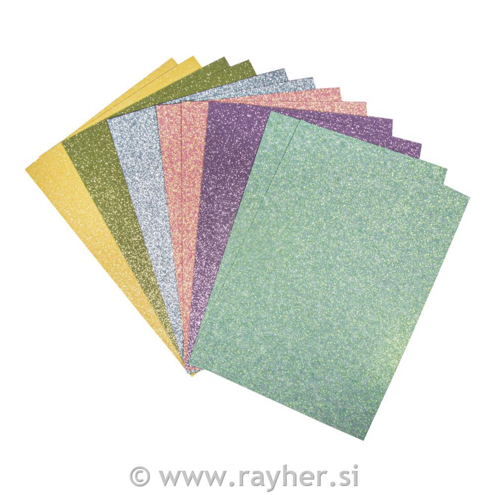 Samolepilni papir z bleščic. - Pastel, A5,130g/m2, set 12