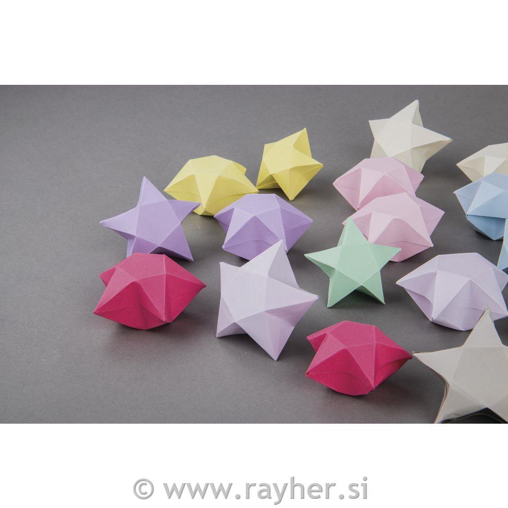 V setu je 100 listov ( 80-100g papir) v desetih pastelnih barvah, ki vam omogoča izdelavo vseh vrst origami oblik.