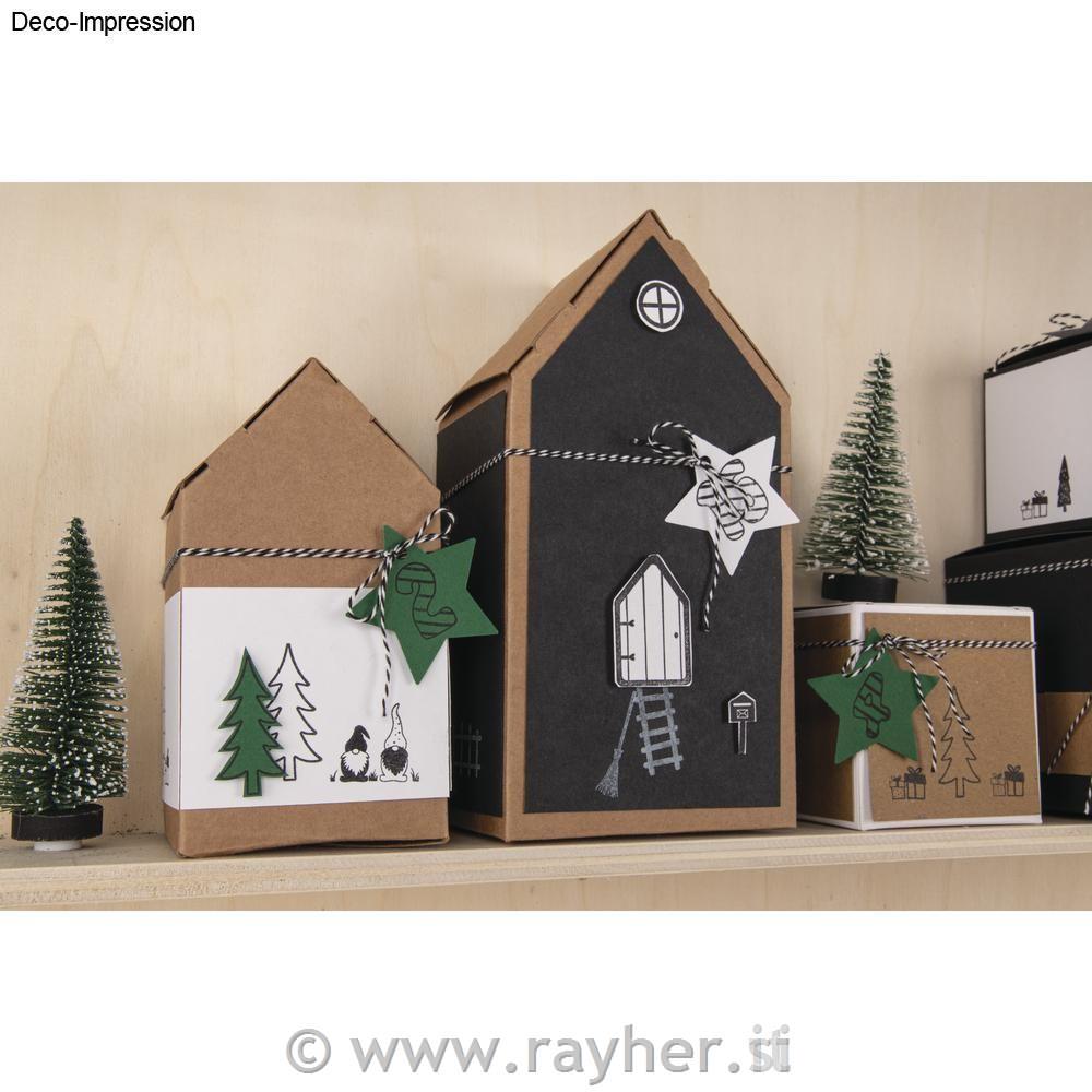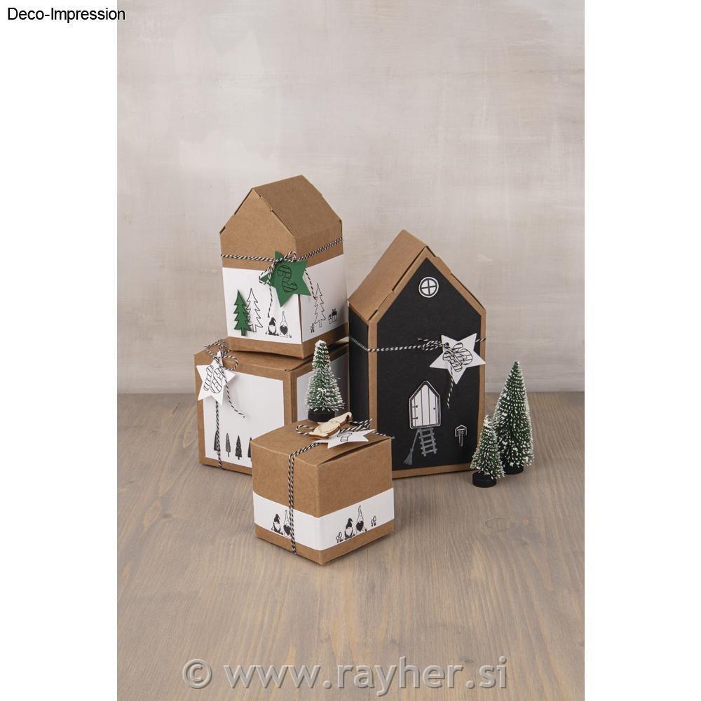 Hiške lahko poljubno okrasite s trakovi, barvami, bleščicami, štampiljkami,…