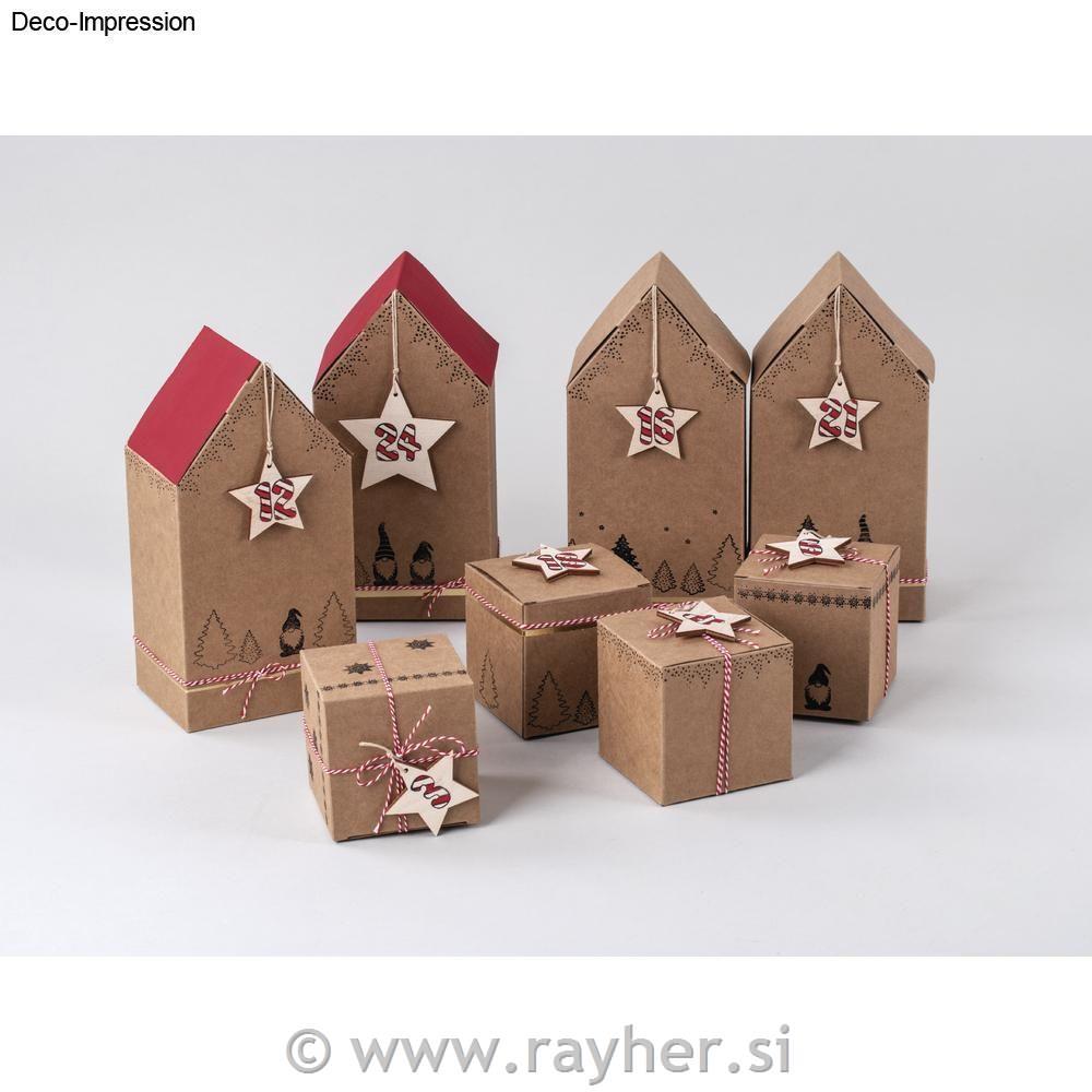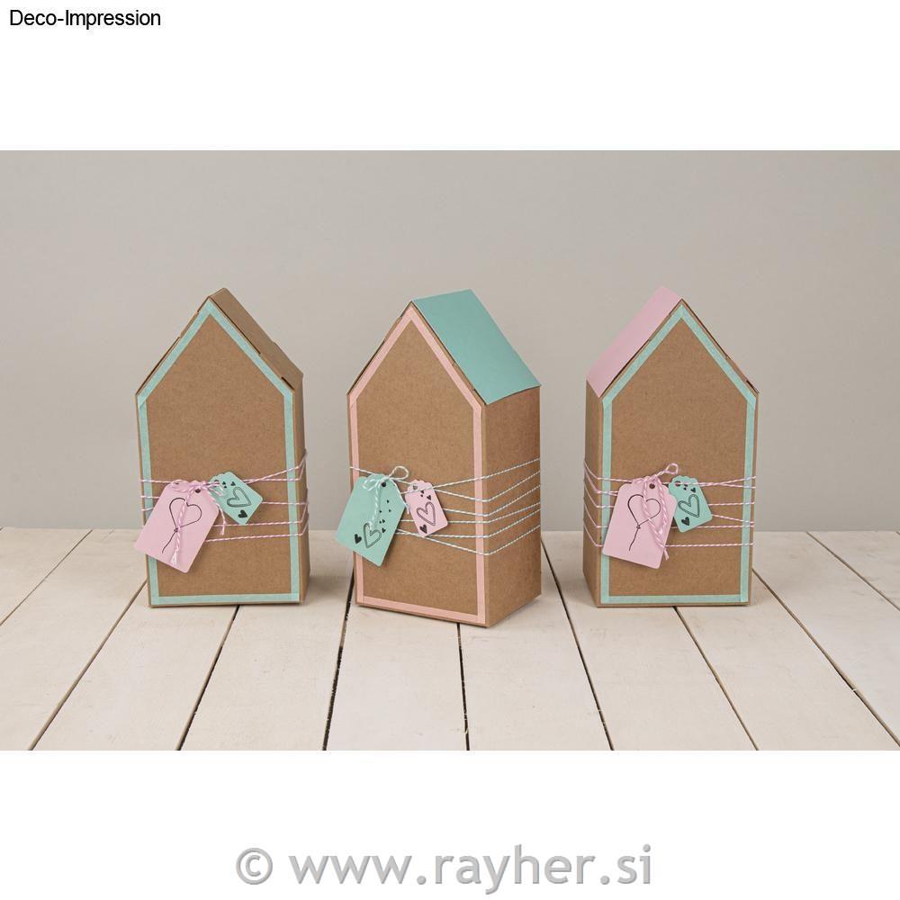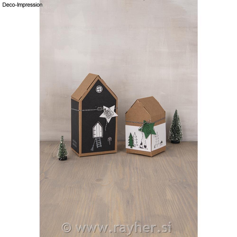 • Škatle iz kartona, Hiške, kraft, 10x7.5x20cm, set 3