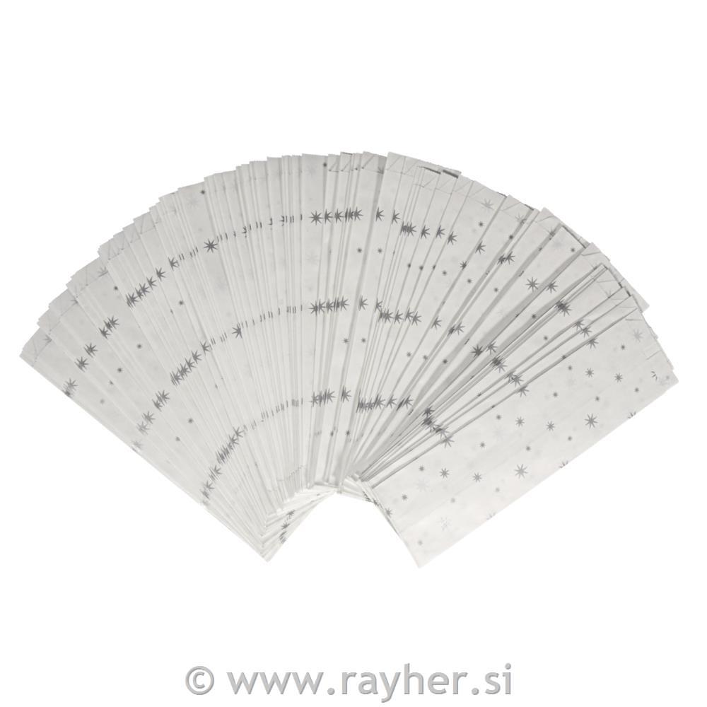Papirnata vrečka z zvezdico, srebrna, 7x24cm, 100 kosov