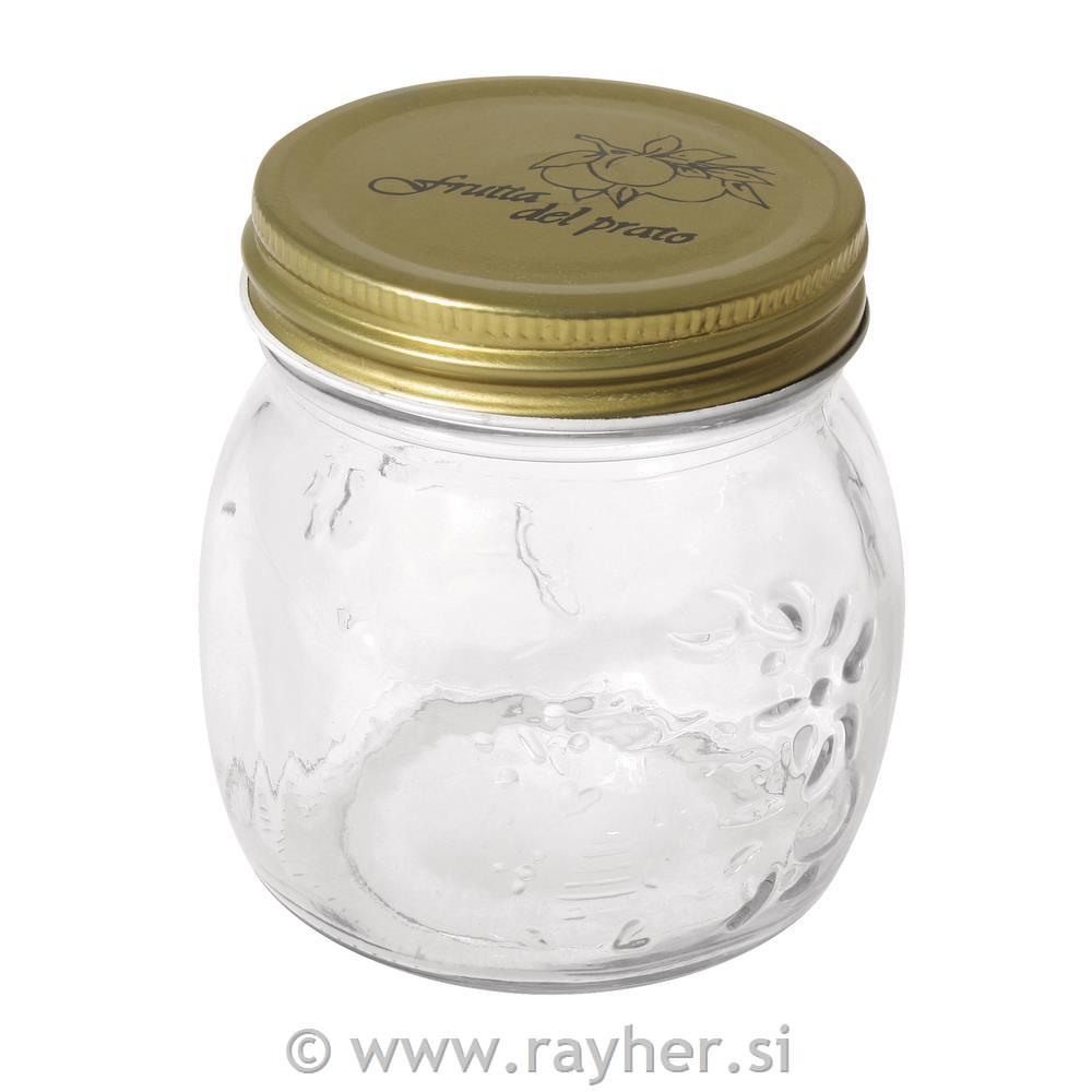 Stekleni kozarec s pokrovom ima prostornino 250 ml, premer 8 cm in je visok 9 cm.