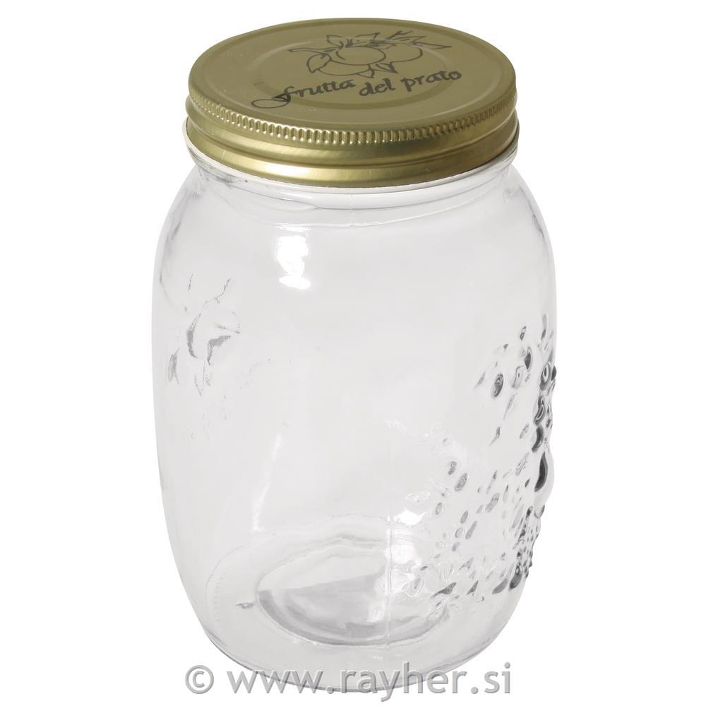 Stekleni kozarec s pokrovom ima prostornino 1000 ml, premer 10.5 cm in je visok 17 cm.