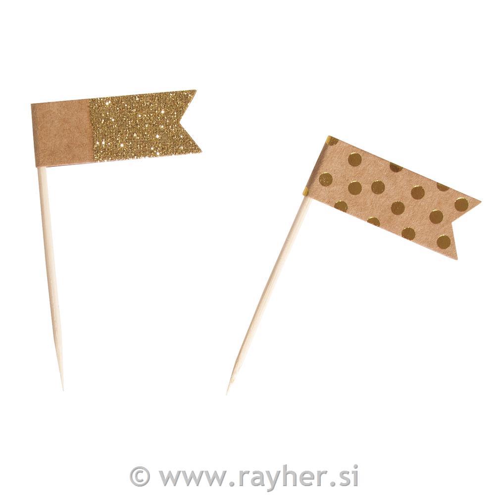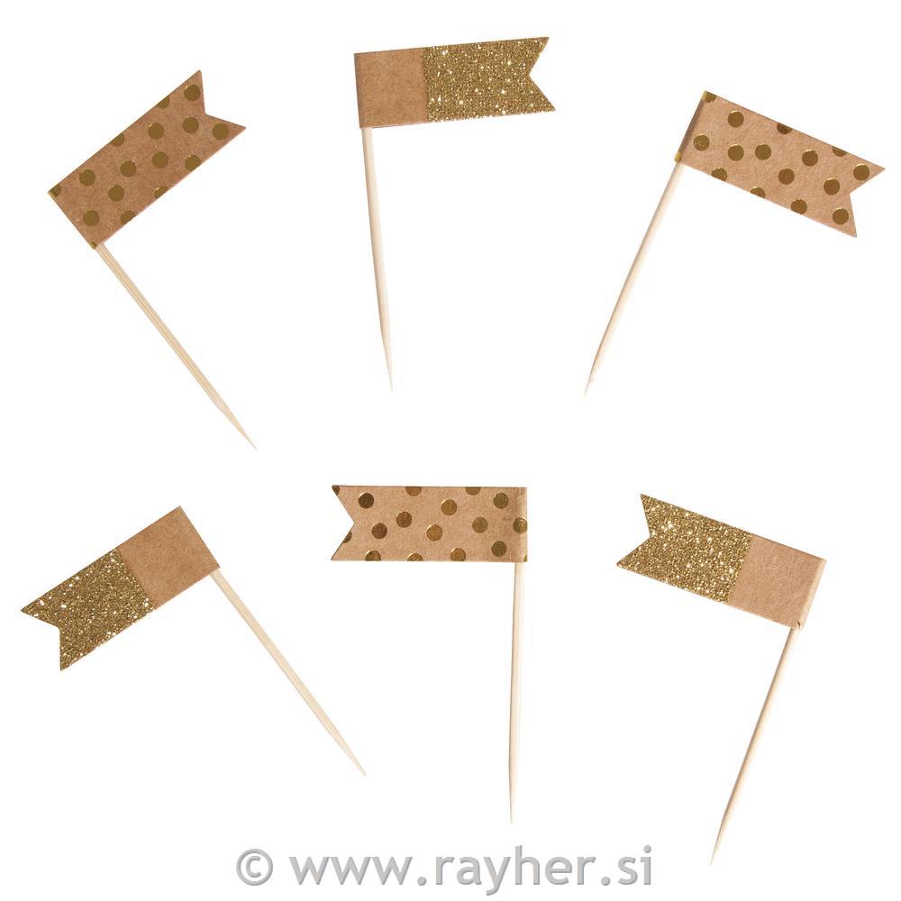 • Zastavice mini, zlate, 6.5cm, Zastava: 4x1,5cm, 12 kos