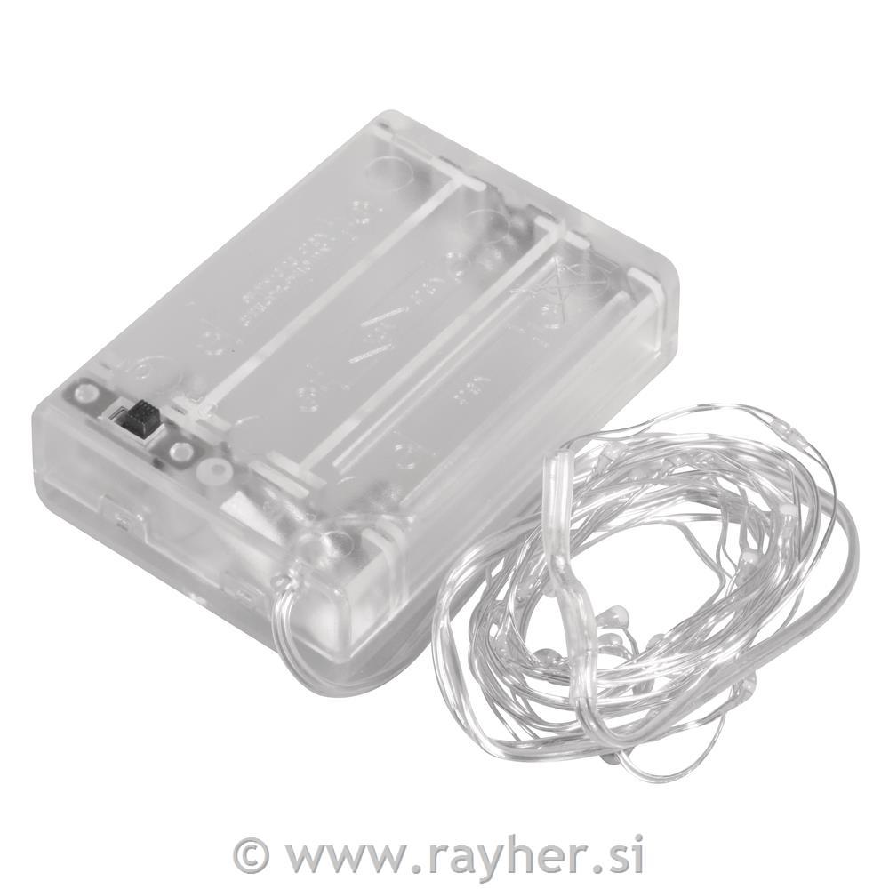 Lučke Mini LED veriga, notranje, bele, 190cm,20 lučk,na bat.