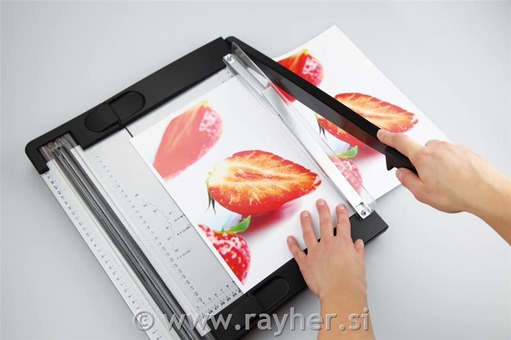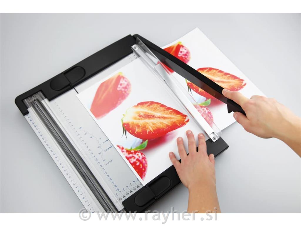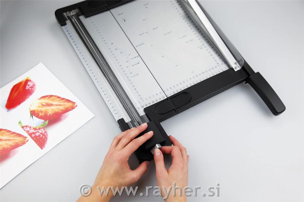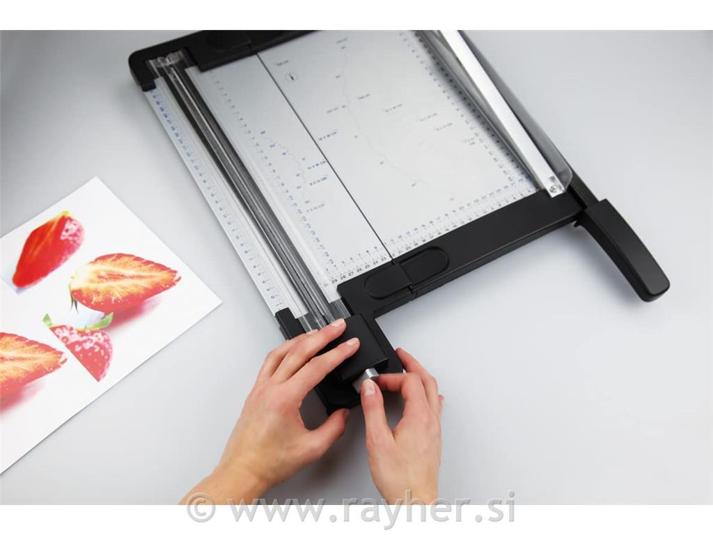 Obrezovalnik: Kapaciteta rezanja: največ 10 listov (papir 80 g/m2) Dolžina rezanja: 320 mm Metrična lestvica Dimenzije (D x D x V): 543 x 243 78 mm Teža: 1,5 kg