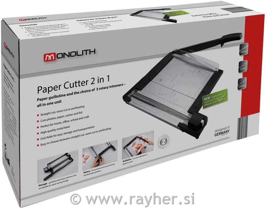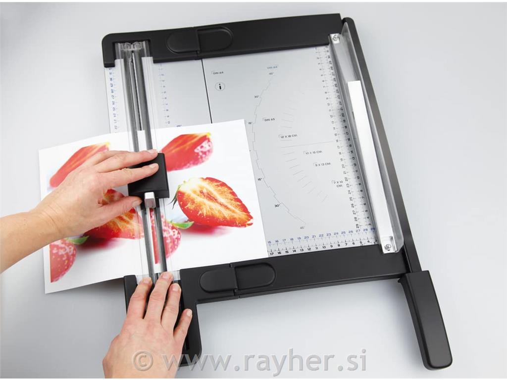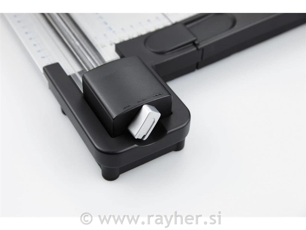 Rezalnik in prirezovalnik; 2 v 1 za rezanje papirja, kartona, fotografij in plastificiranih listov. Za perforiran rez, valovito in ravno rezanje. Patentirana naprava za menjavo rezil. Način rezanja je mogoče enostavno spremeniti z ročico, brez menjave rezila. Enostavno in kompaktno shranjevanje - preprosto zložite rezila ali ločite obe enoti. Uporaba kovine namesto plastike za visoko trdnost in vzdržljivost. Varna za uporabo zahvaljujoč inovativnemu mehanizmu za rezanje in pritisku na papir.