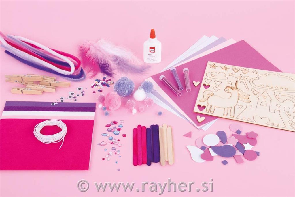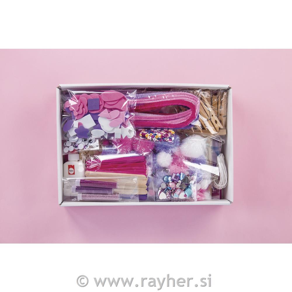 Odličen ustvarjalni set za deklice, s številnimi materiali za izdelavo različnih unikatnih izdelkov. Primerno za otroke od 4. leta dalje. Kot nalašč za vsak otroški rojstni dan.