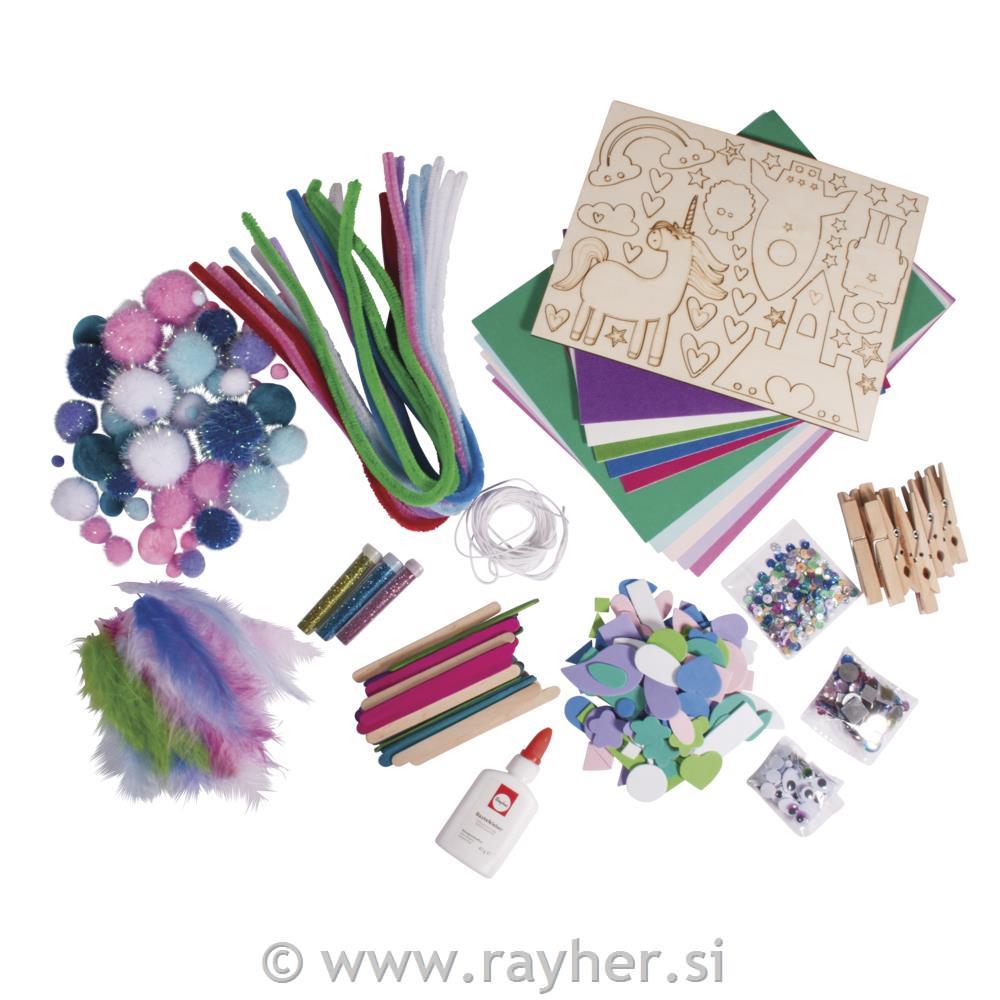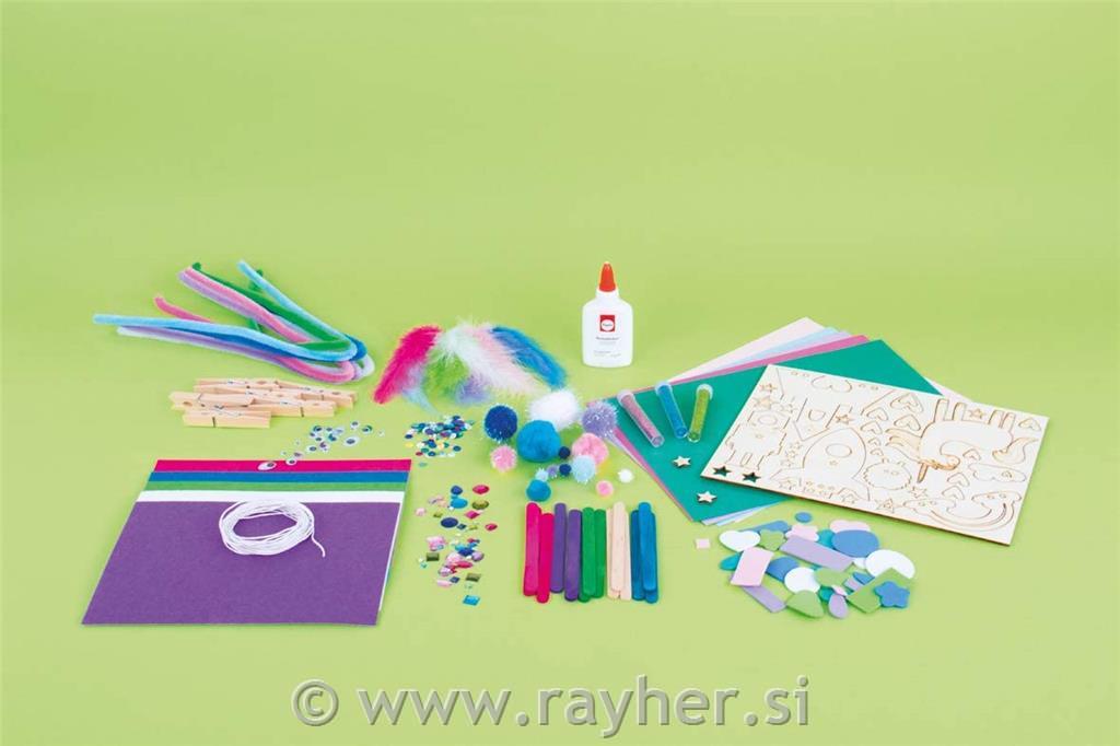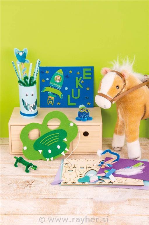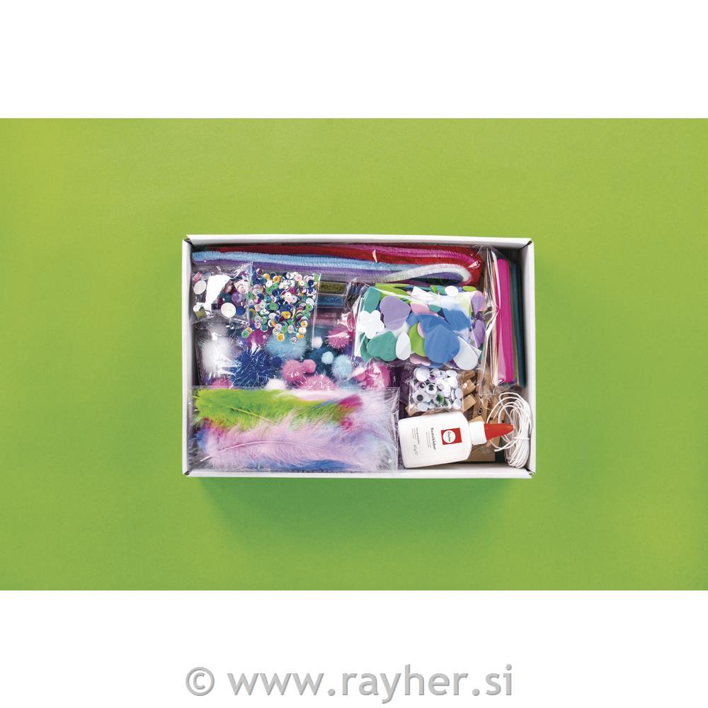 Odličen ustvarjalni set za punce in fante, s številnimi materiali za izdelavo različnih unikatnih izdelkov. Primerno za otroke od 4. leta dalje. Kot nalašč za vsak otroški rojstni dan.