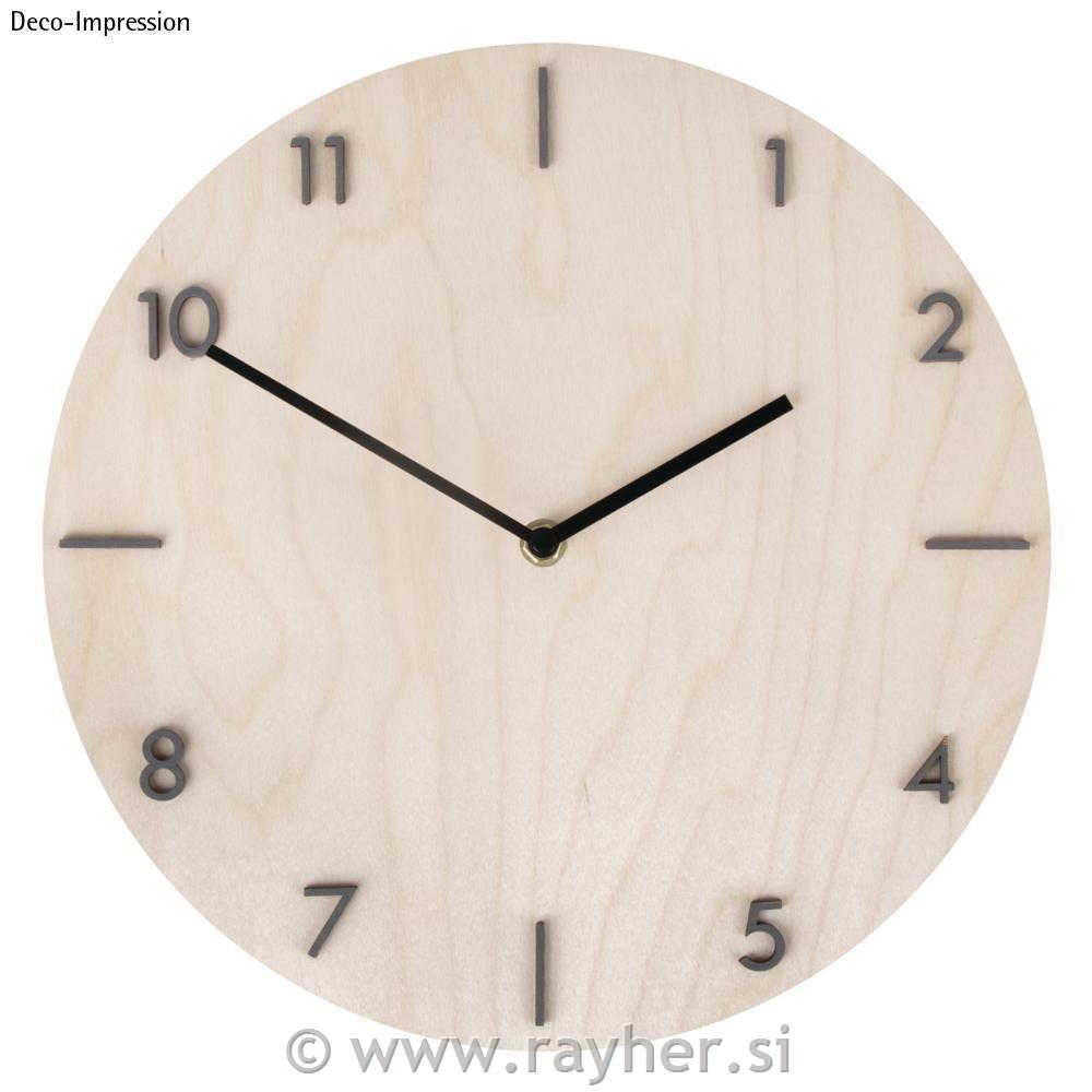 Primerna za stenske ure vseh vrst. Za slikanje, šabloniranje, žigosanje, laminiranje s tkanino in papirjem, servietno tehniko itd. Potrebni so tudi urni mehanizem in urne ročice.