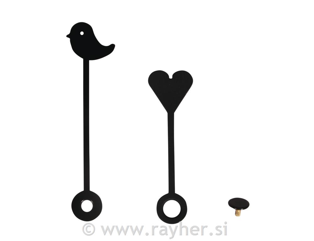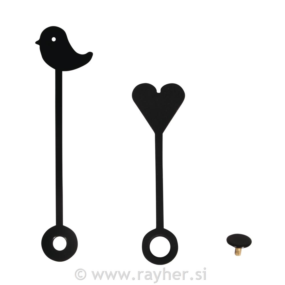 Komplet prikupnih urnih kazalcev, ptiček in srček ( manjši 5 cm večji 6,5 cm + črn pokrovček)